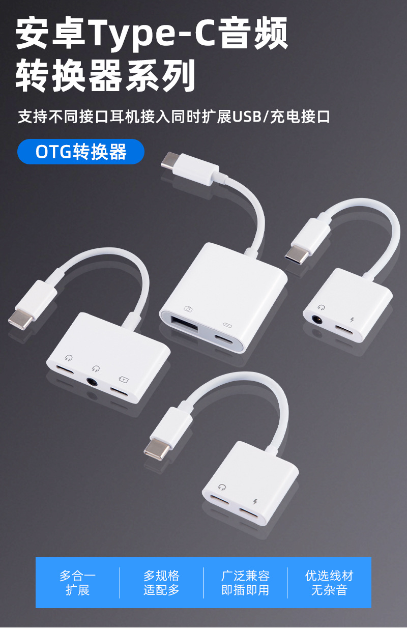 音频线 音频连接线 音频转接线 3.5接口 USB USB3.0 读硬盘 鼠标 键盘 充电 Type-C接口 支持苹果17 16 15 华为