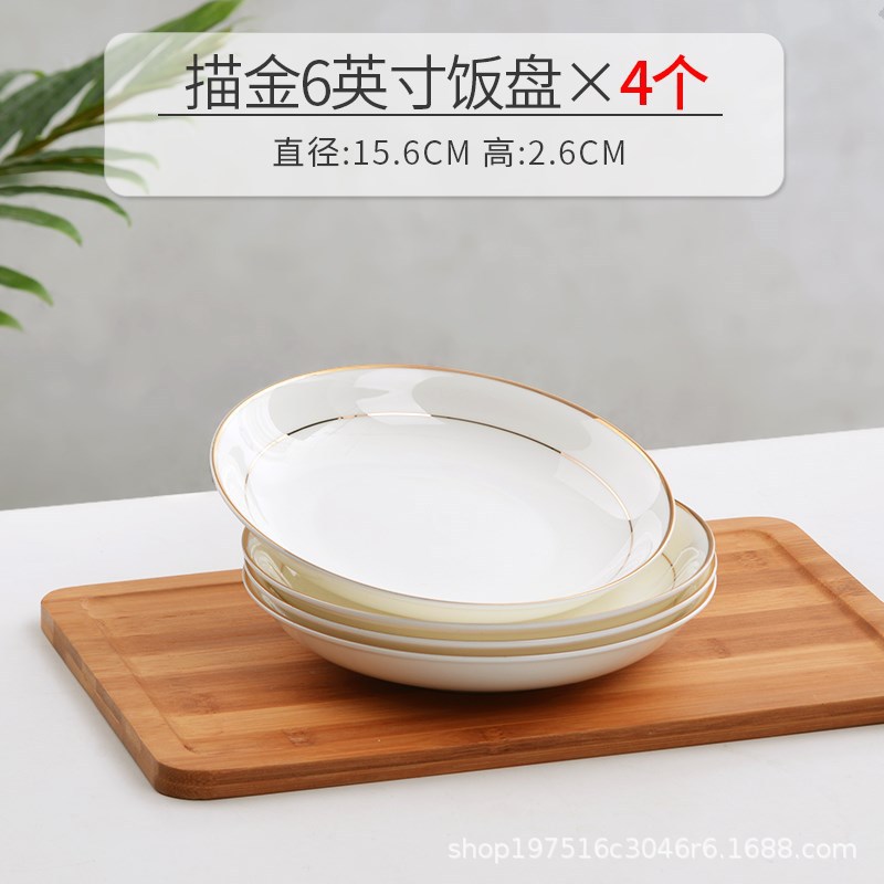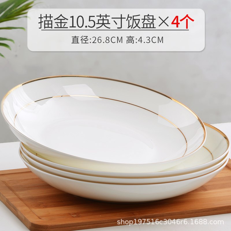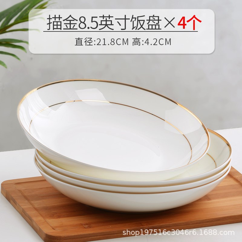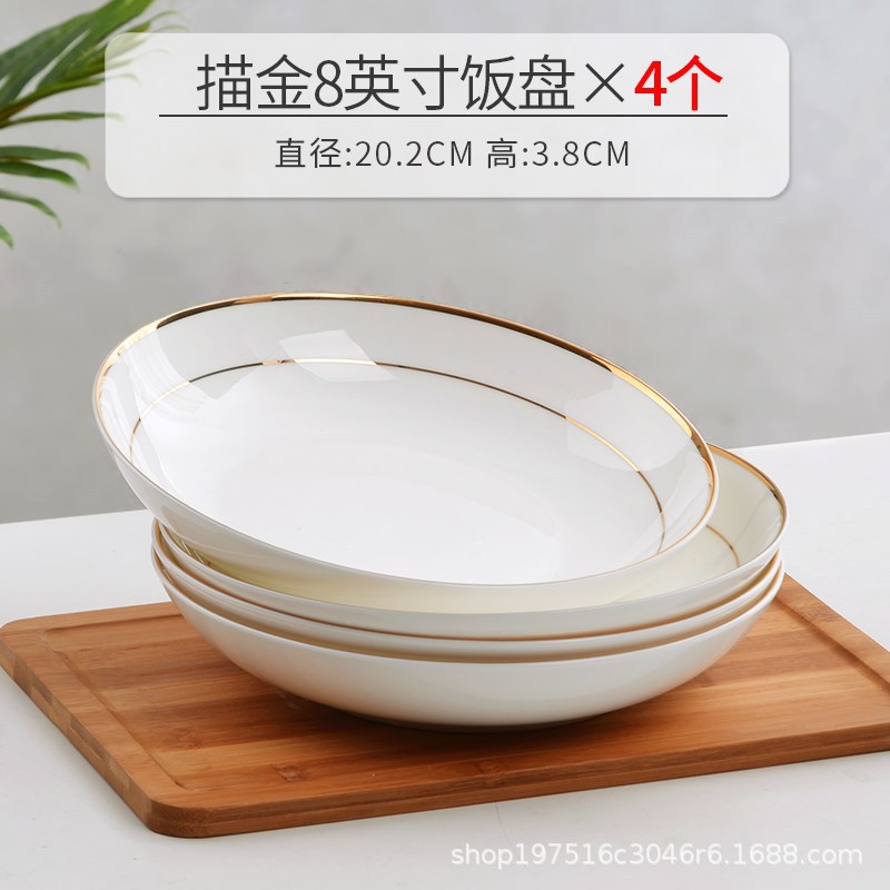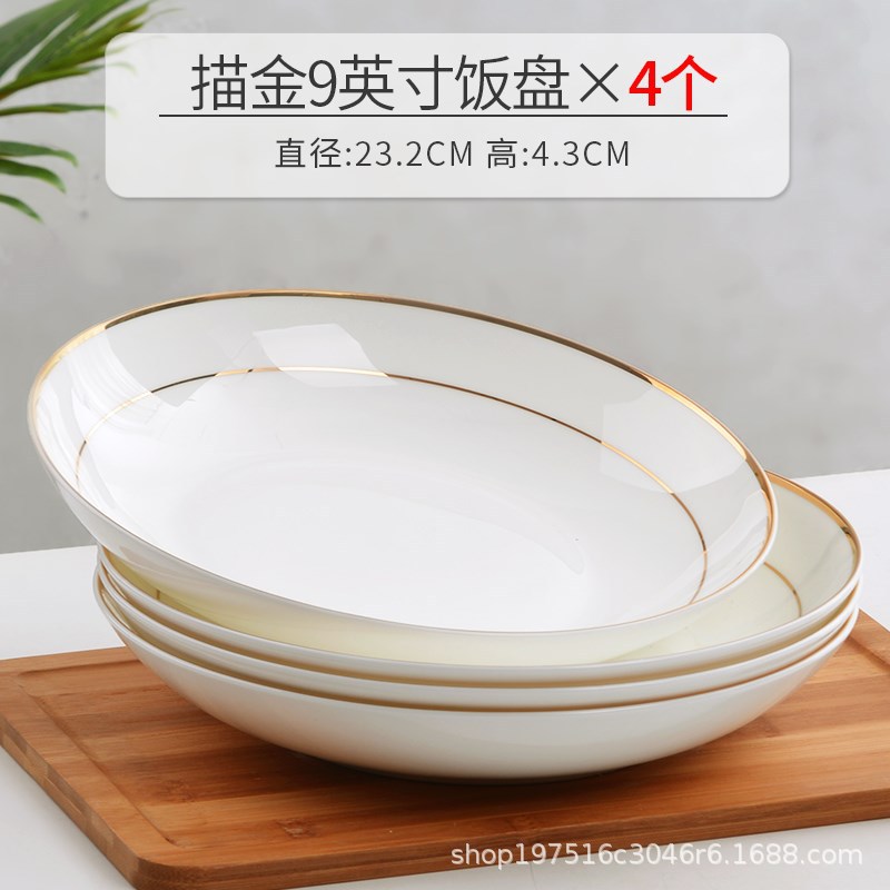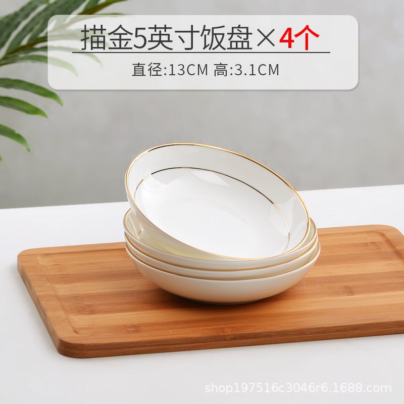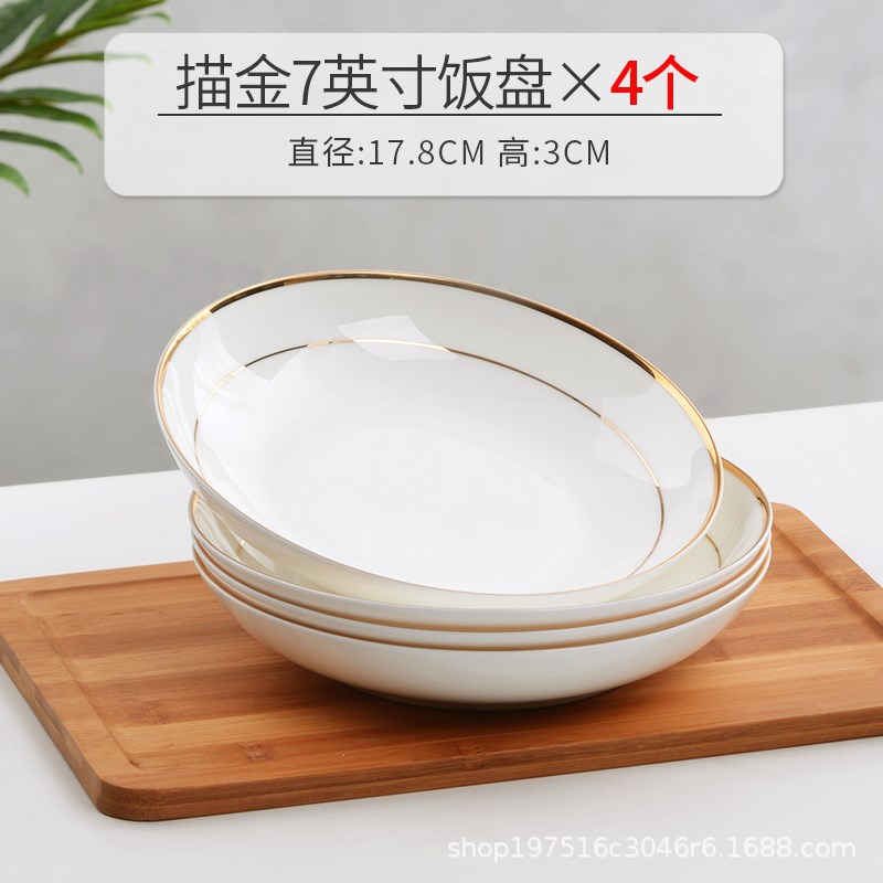 경덕진 요리 접시, 가정용 본차이나 밥 접시, 새로운 창의적인 유럽 스타일 금테 본차이나 접시, 깊은 접시, 금색 장식 식기 그릇스토어 가기