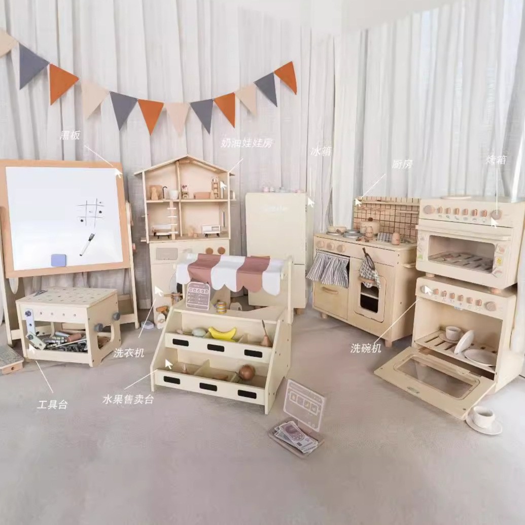 어린이 놀이 나무 부엌 시뮬레이션 주방 용품 소년 소녀 요리 나무 유치원 놀이터 장난감스토어 가기