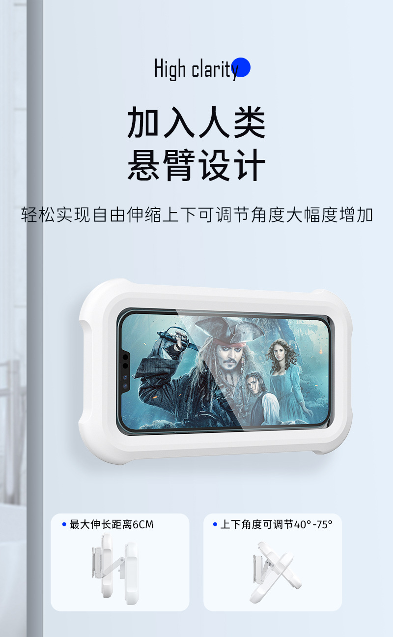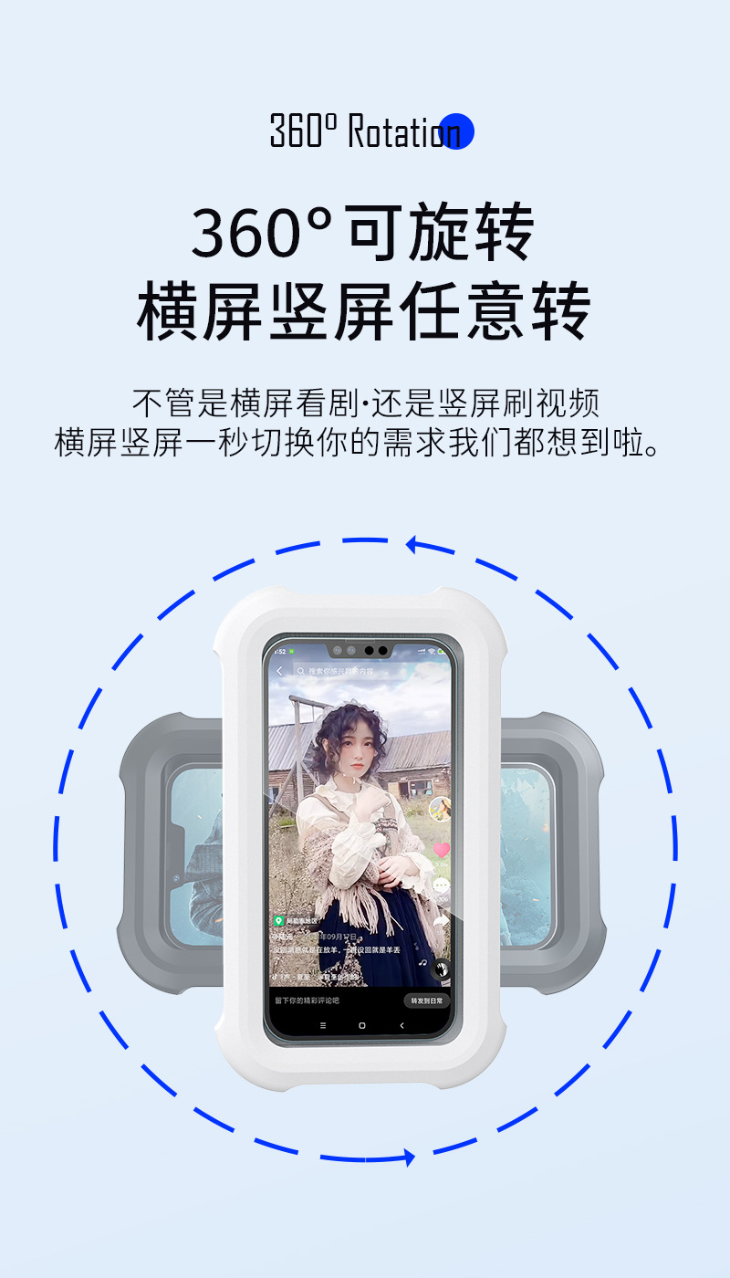 3.角度调节:360°横竖屏切换,伸缩6cm,上下角度可调40°-75°
