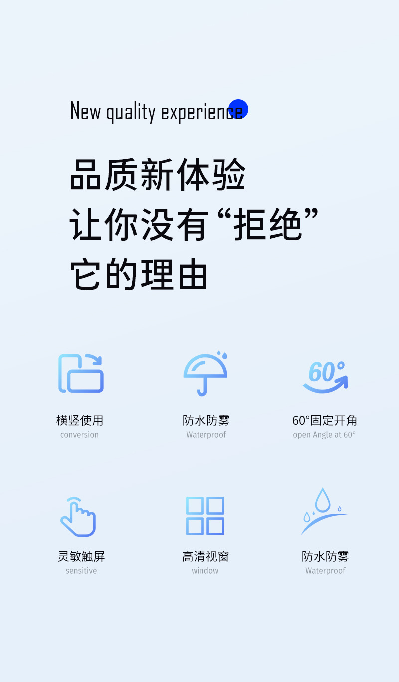 1.防水防雾:全包式360°防水,内设密封防水圈