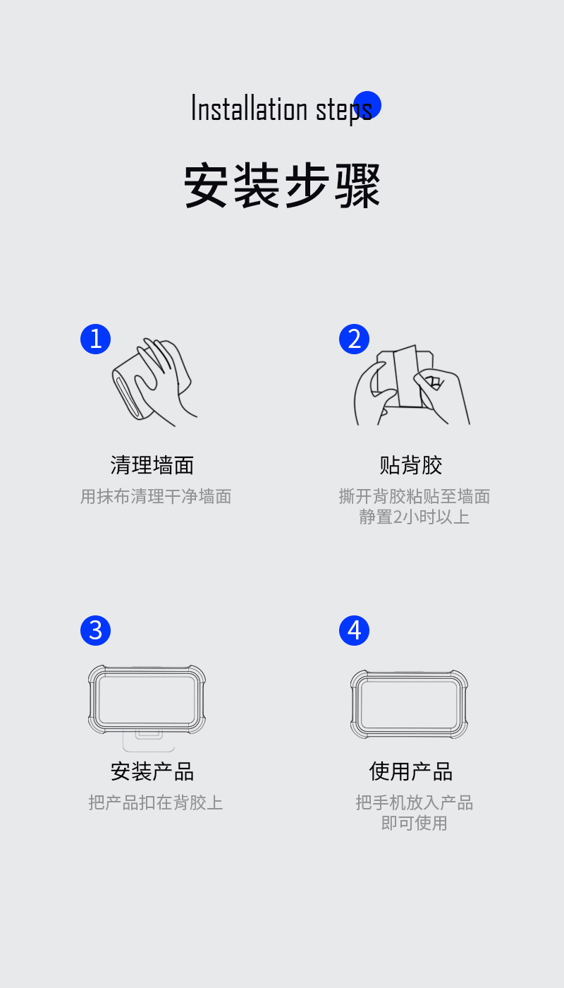2.多功能支架:墙壁支架/桌面支架,可承重300g