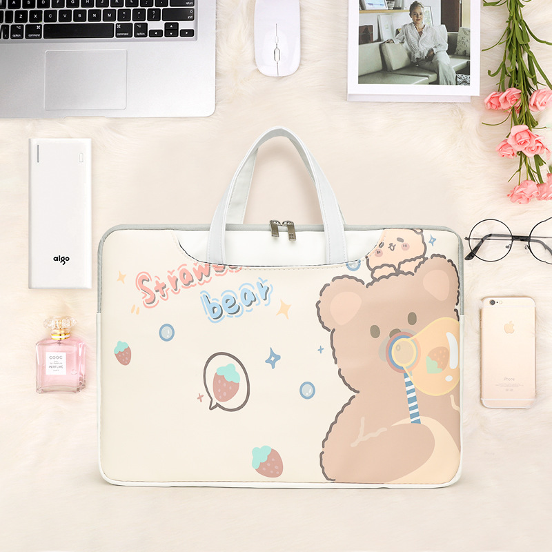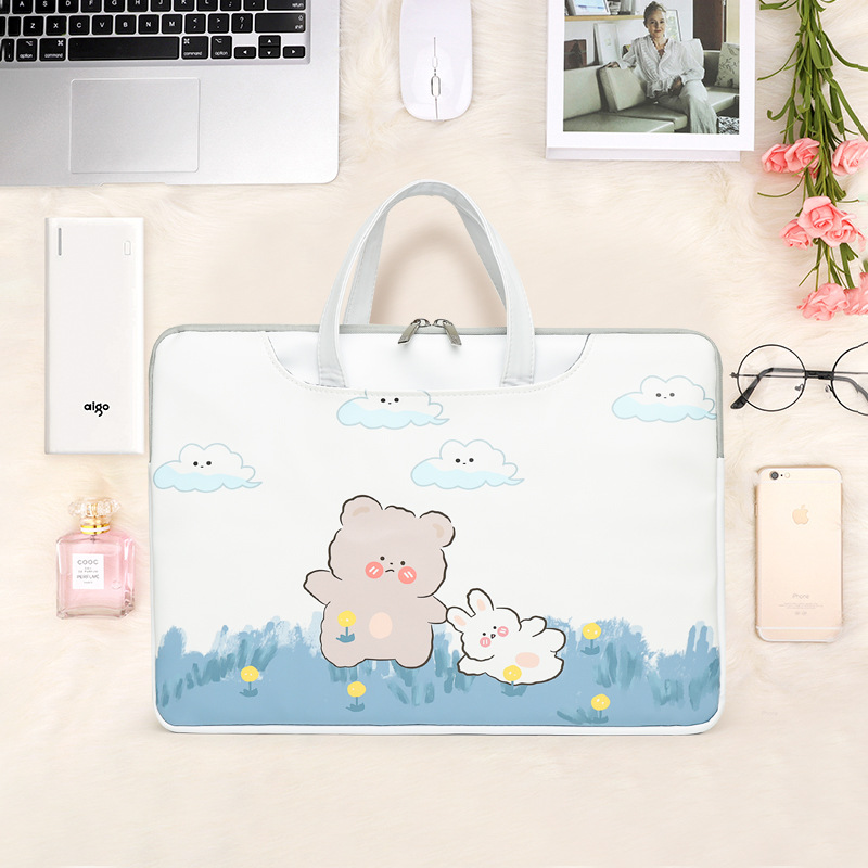 귀여운 만화 인쇄 컴퓨터 가방 13.3 인치 14 인치 15.6 인치 노트북 가방 플랫 라이너 가방 세대 헤어