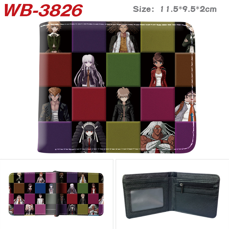 깨진 애니메이션 주변 장치 동전 지갑 만화 풀 컬러 인쇄 남성과 여성의 짧은 카드 가방 변경 가죽 클램프 가방에 총알