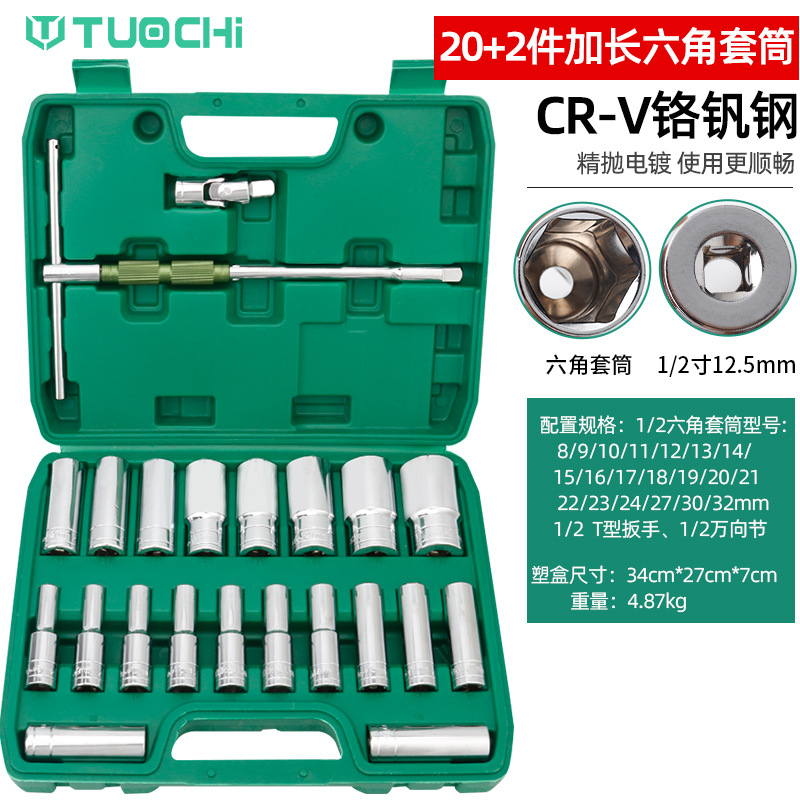 산업 등급 육각형 연장 풀오버 매화 소켓 래칫 렌치 소매 헤드 T 형 렌치 자동 수리 조합 도구스토어 가기