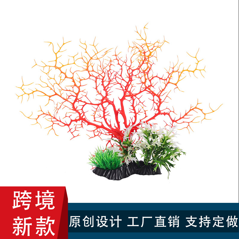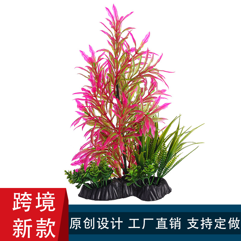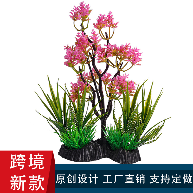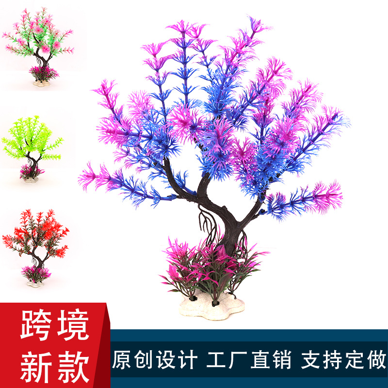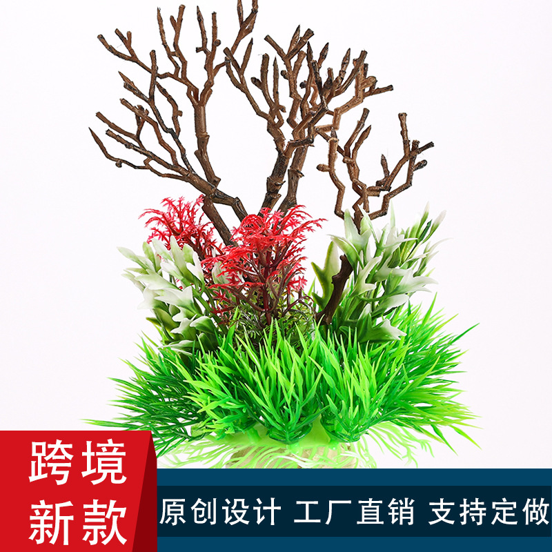 • 跨境新款水族馆布景水族箱塑料植物鱼缸造景装饰树假水草仿真水草