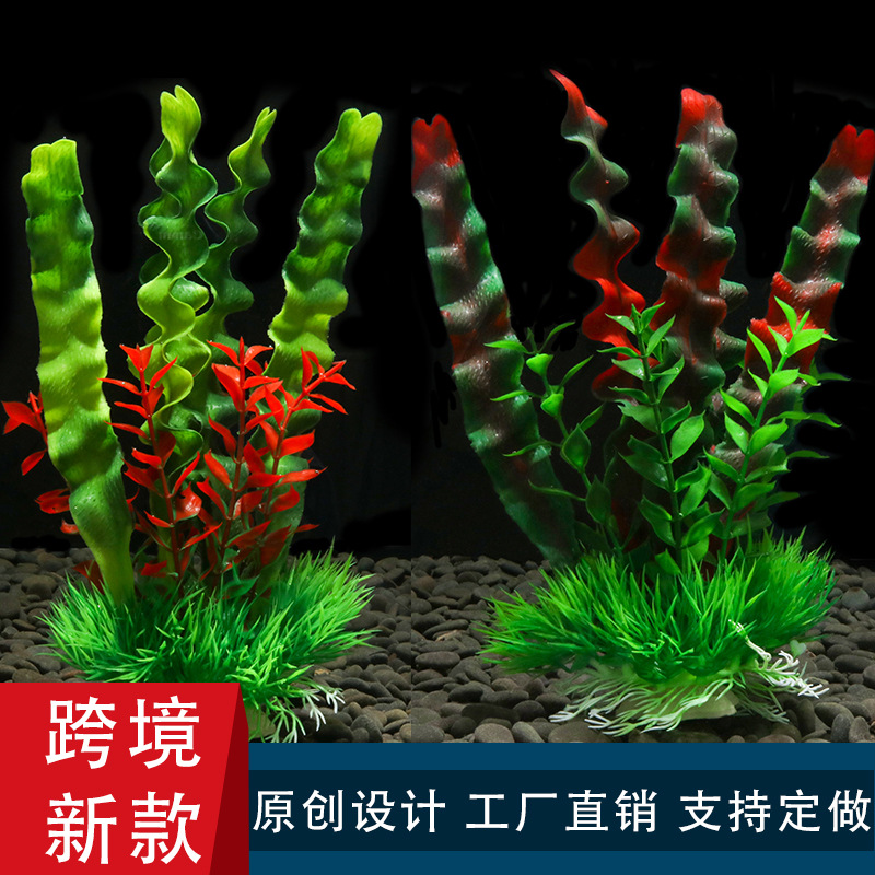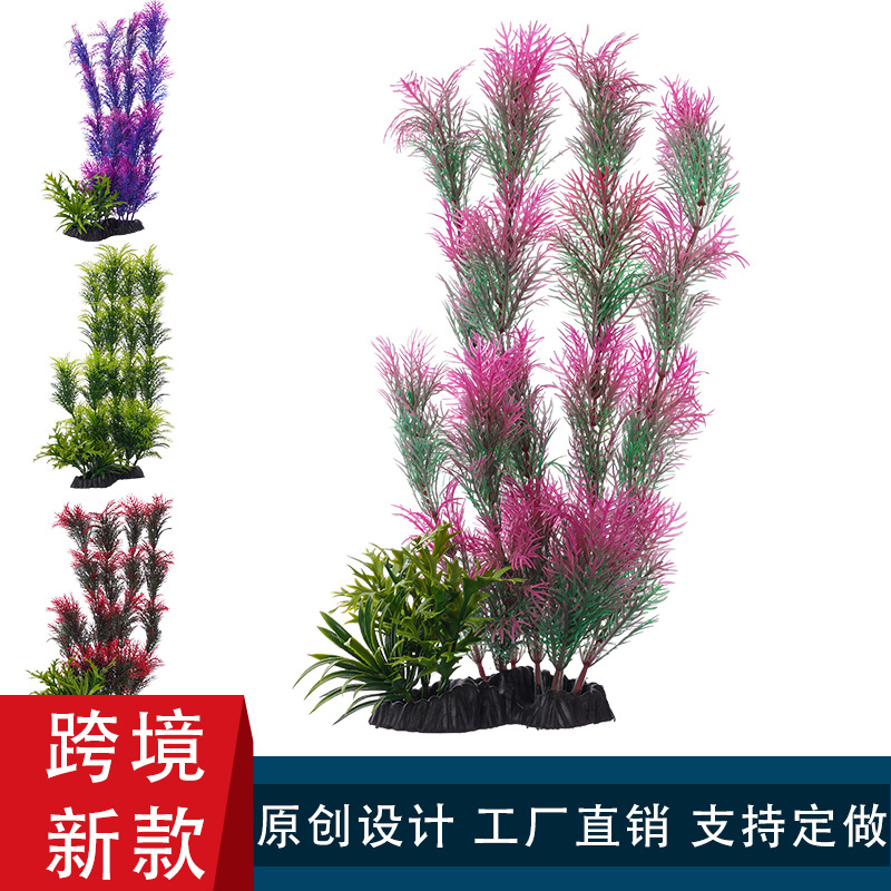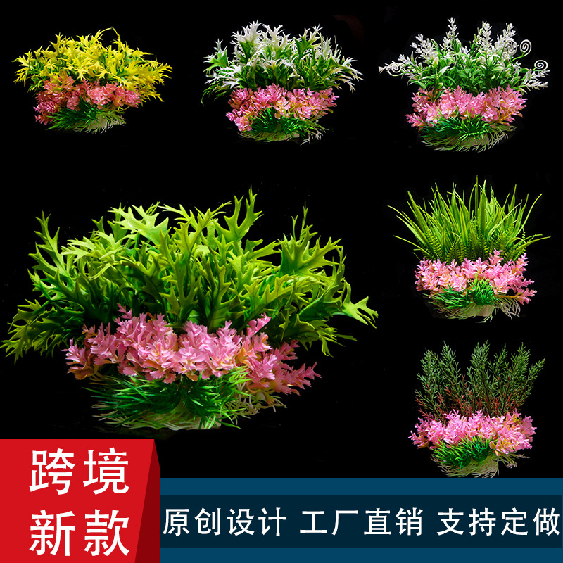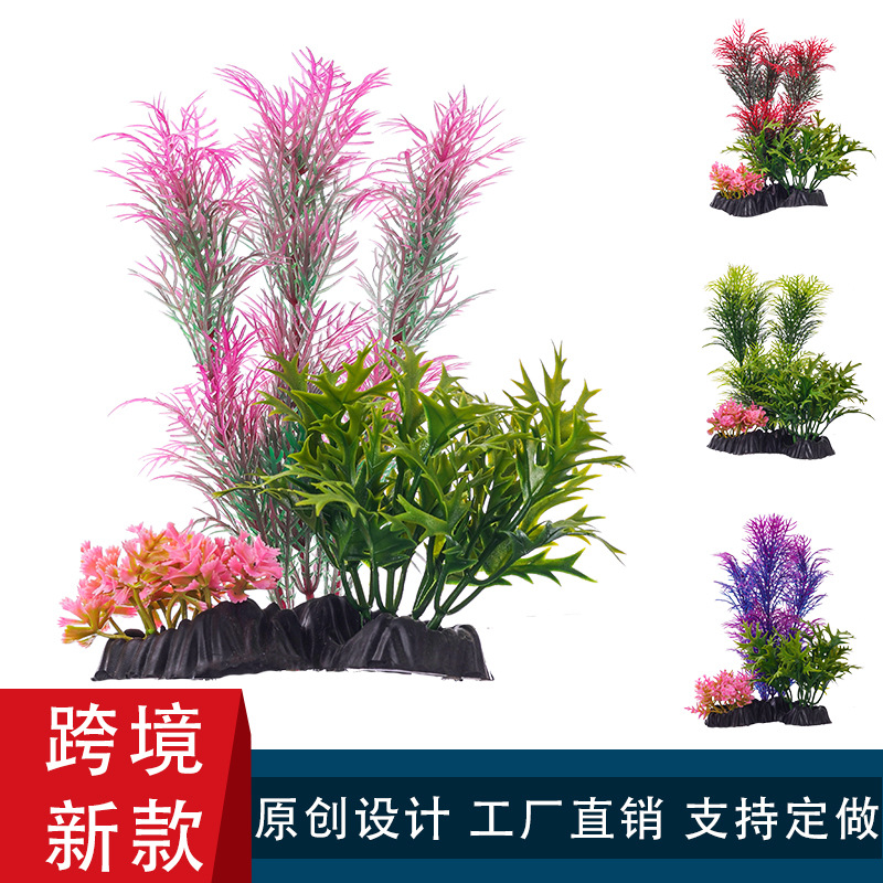 • 鱼缸造景装饰摆件 仿真水草 跨境厂家批发水族箱布景塑料水草丛堆