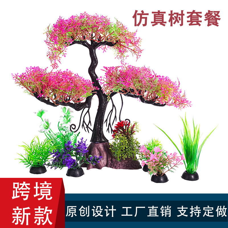 • 仿真水草鱼缸造景装饰摆件批发 水族箱塑料莫斯树假绿植套餐