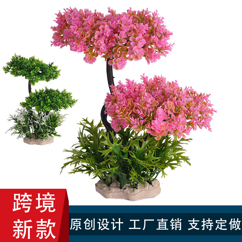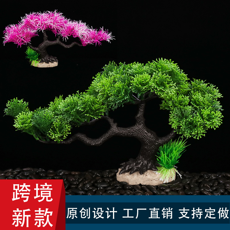 • 鱼缸造景装饰摆件 人造塑料仿真莫斯树 仿真水草假水草仿真迎客松