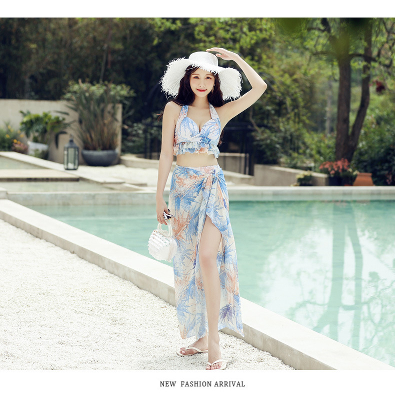새로운 커플 수영복 남성 비치 바지 여성 3 피스 스커트 스플릿 수영복 비키니 해변 휴가 착용스토어 가기