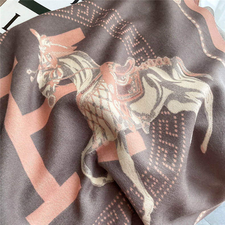 유럽과 미국의 빅 브랜드 H-캐리지 모조 캐시미어 스카프 여성의 가을과 겨울 따뜻한 긴 두꺼운 대외 무역 스카프 목도리 이중 사용스토어 가기