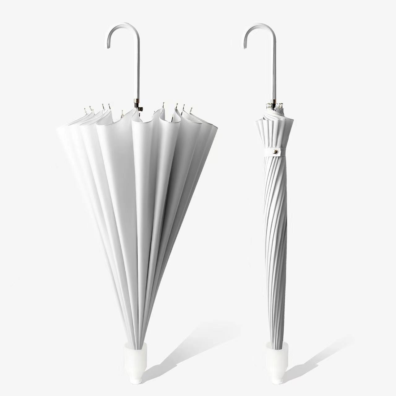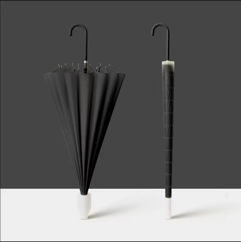 일본 긴 손잡이 우산 맑고 비오는 이중 사용 검은 고무 큰 폭풍 방지 16-뼈 자동 방수 케이스 간단한 곡선 손잡이 우산