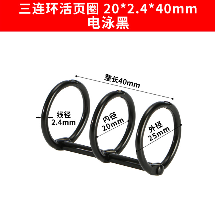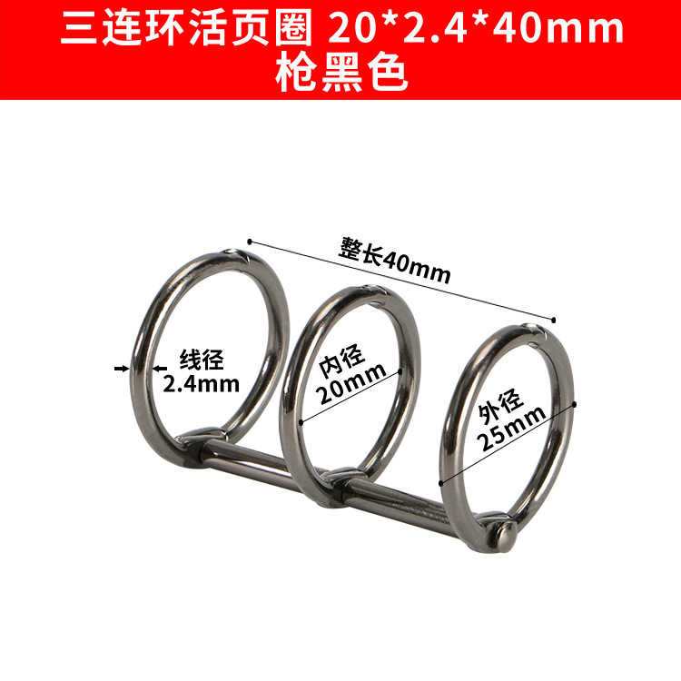 골드 앤 실버 블랙 20*2.4*40mm 캘린더 느슨한 잎 링 바인딩 3 체인 버클 내부 페이지 코어 3 홀 보관 링