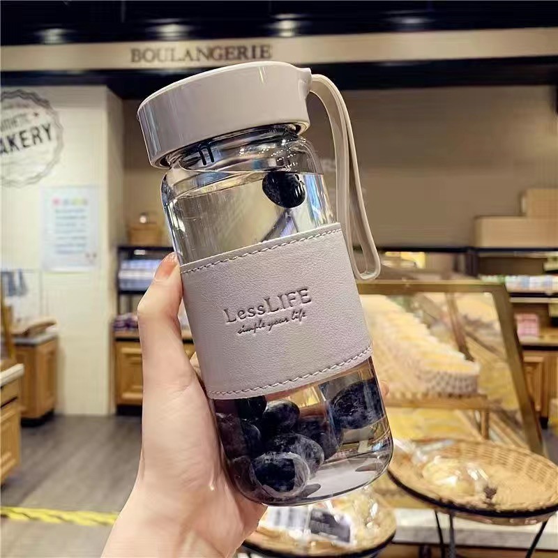 높은 색상 가치 가죽 케이스 유리 높은 borosilicate 높은 온도 저항 컵 차 구획 남성 그물 여름에 여성을위한 빨간색 단일 레이어 물 컵스토어 가기