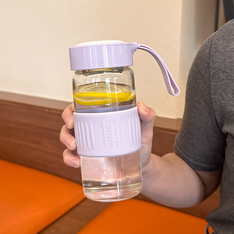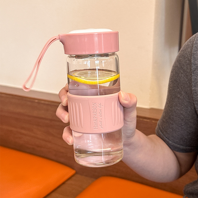 높은 색상 가치 가죽 케이스 유리 높은 borosilicate 높은 온도 저항 컵 차 구획 남성 그물 여름에 여성을위한 빨간색 단일 레이어 물 컵