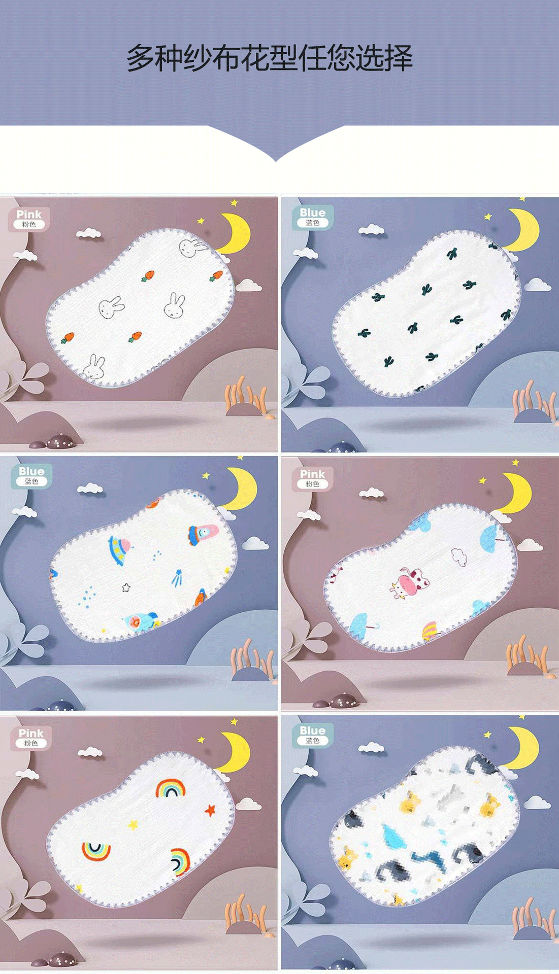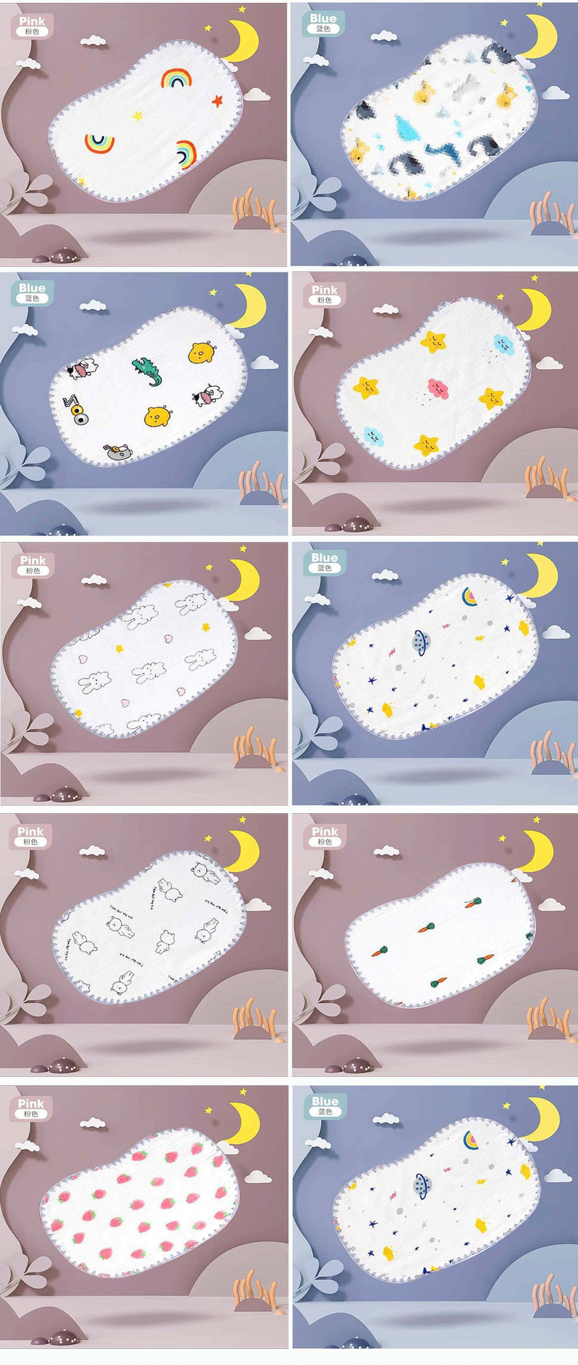 아기 베개 커버, 아기 베개, 10겹 순면 거즈 신생아 머리 베개, 아기 평면 베개, 구름 베개, 드롭 배송