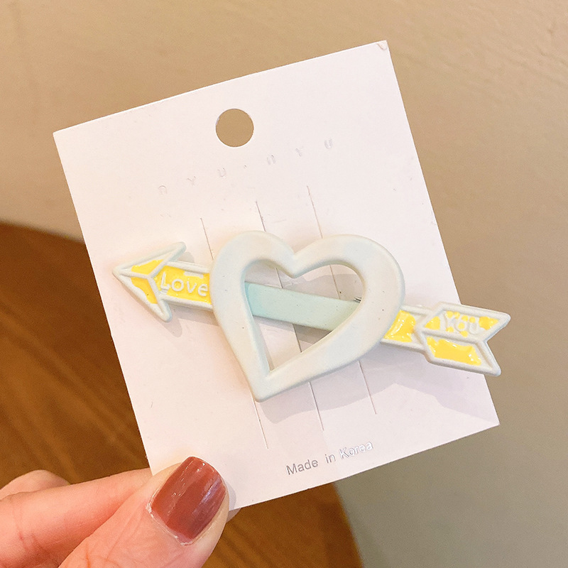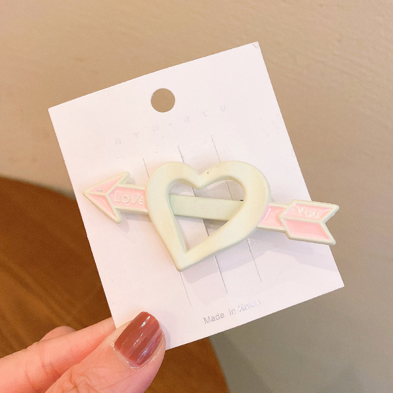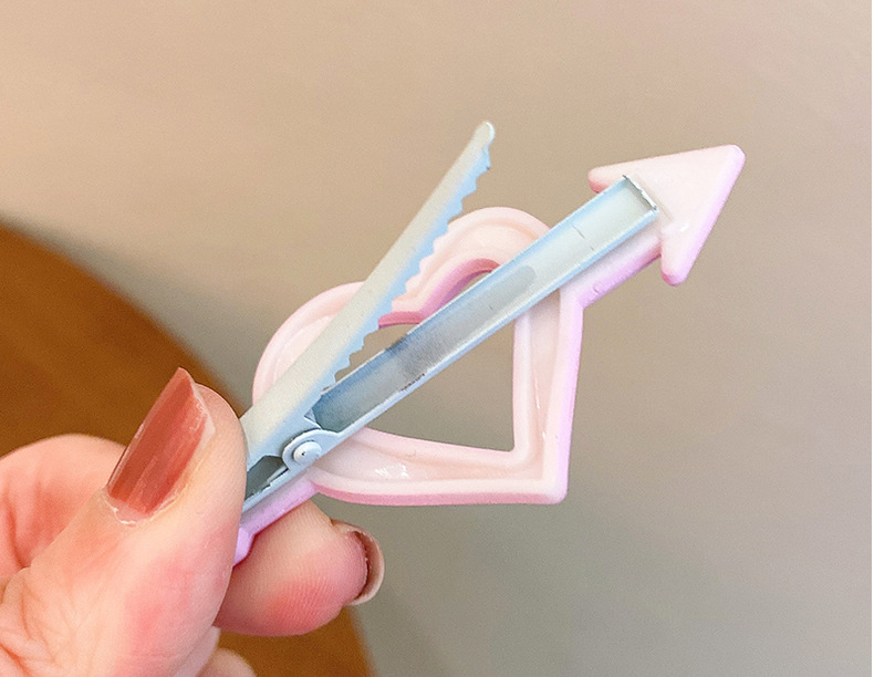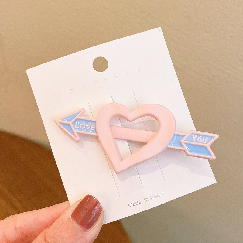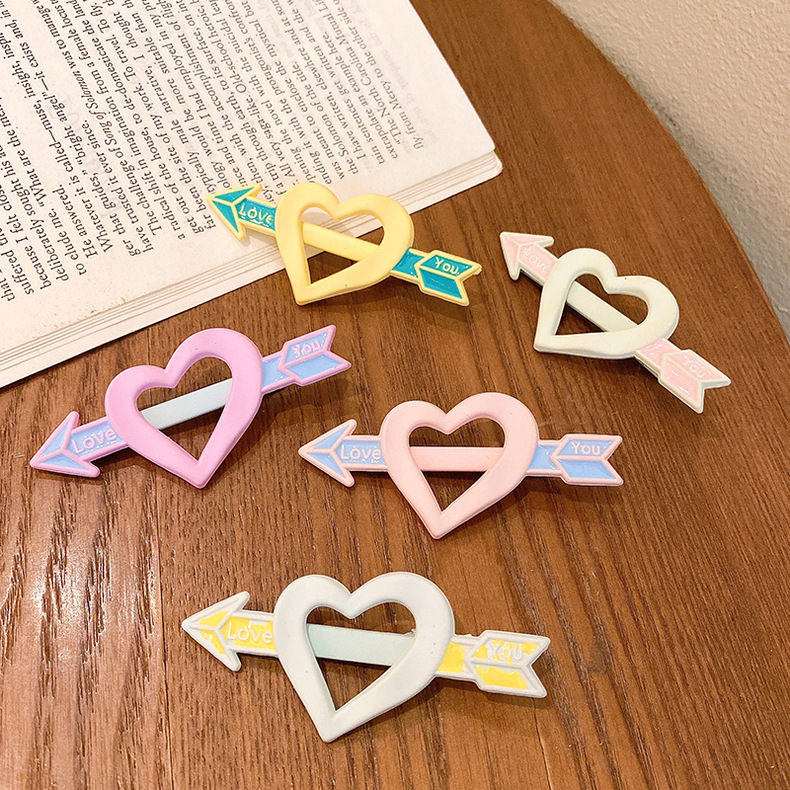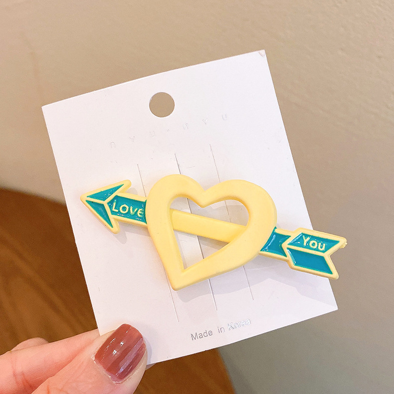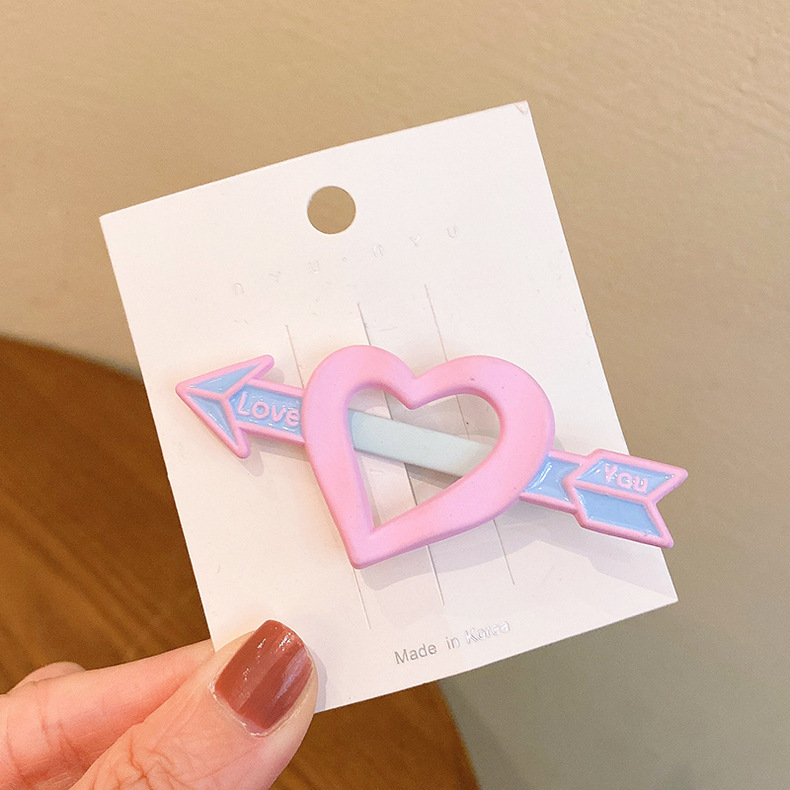 캔디 컬러 원샷 하트 피어싱 헤어핀 헤어 액세서리 도매 여자 깨진 헤어 클립 오리 빌 클립 이우 작은 보석 머리핀