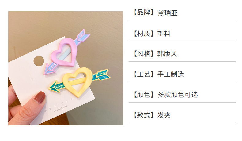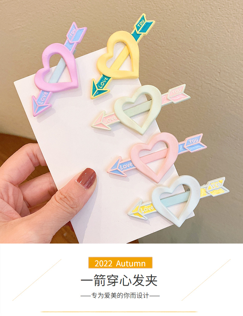 캔디 컬러 원샷 하트 피어싱 헤어핀 헤어 액세서리 도매 여자 깨진 헤어 클립 오리 빌 클립 이우 작은 보석 머리핀스토어 가기