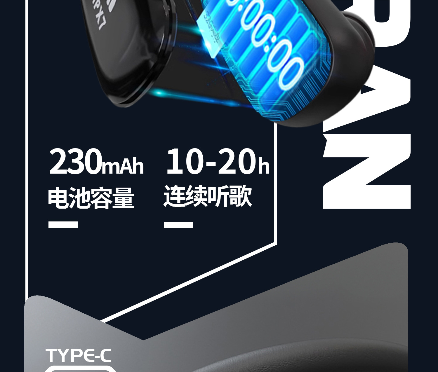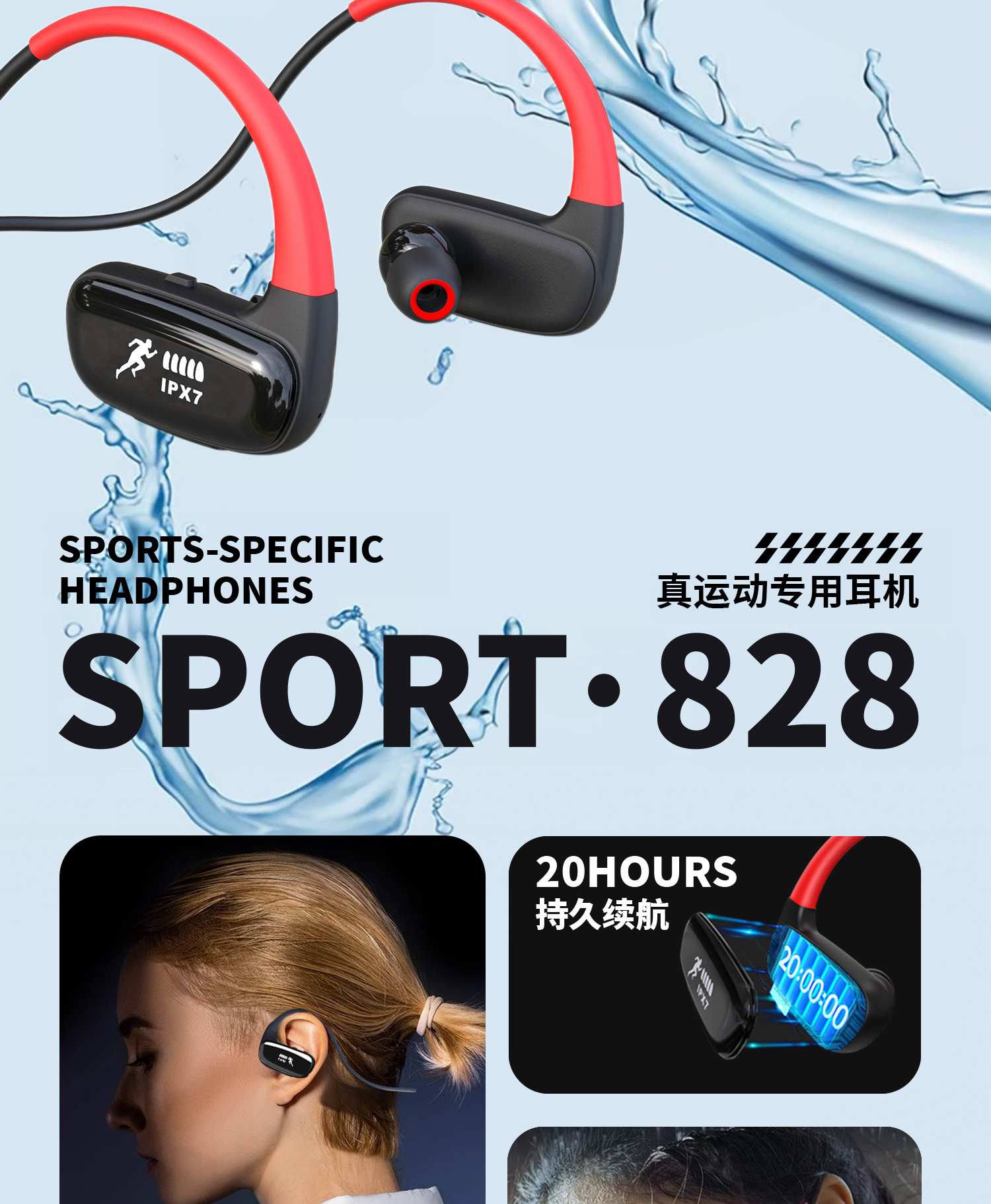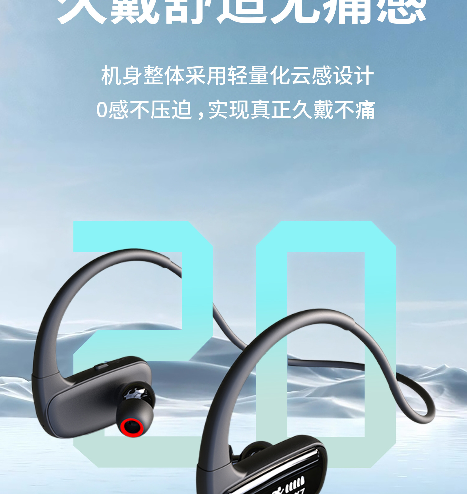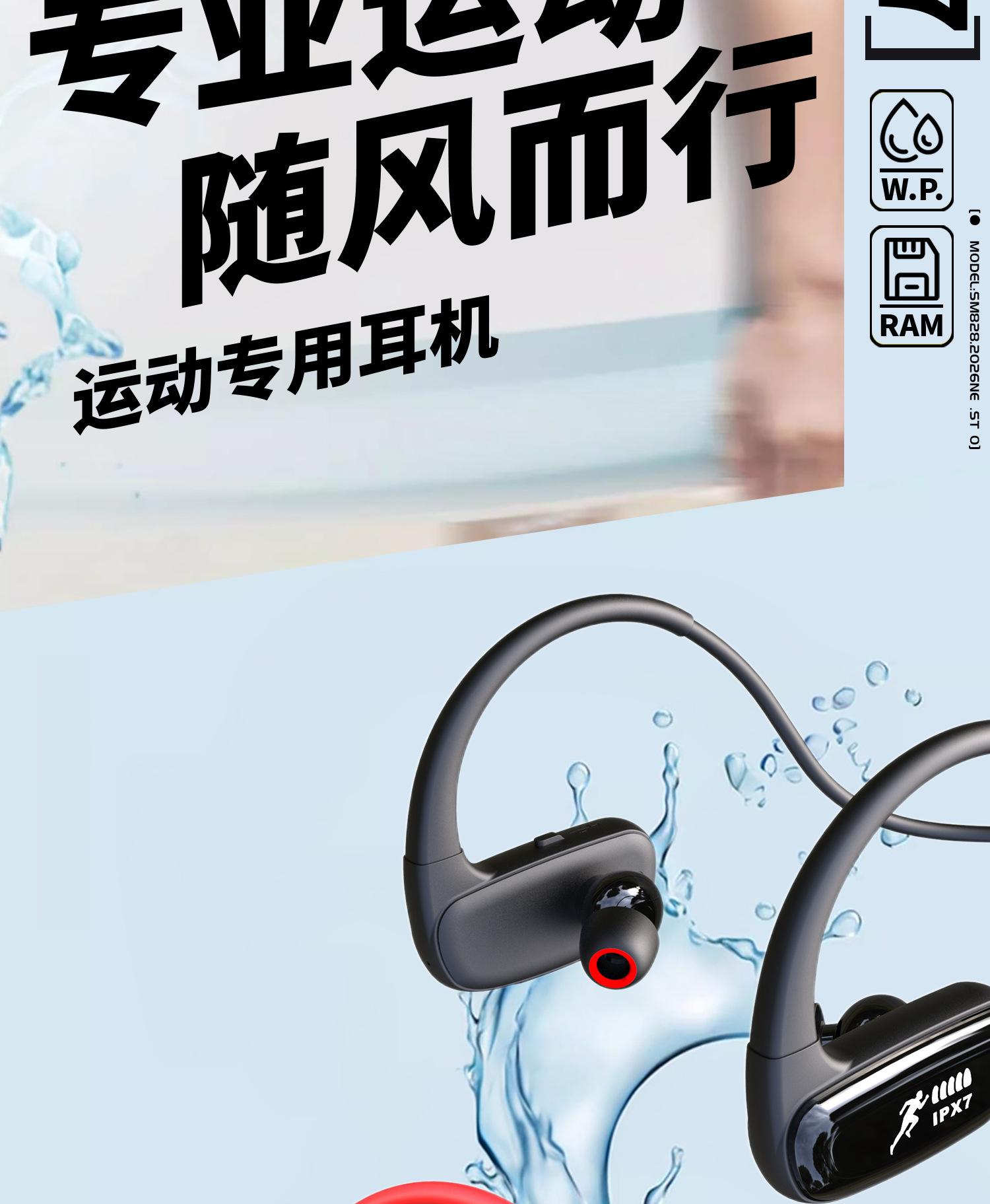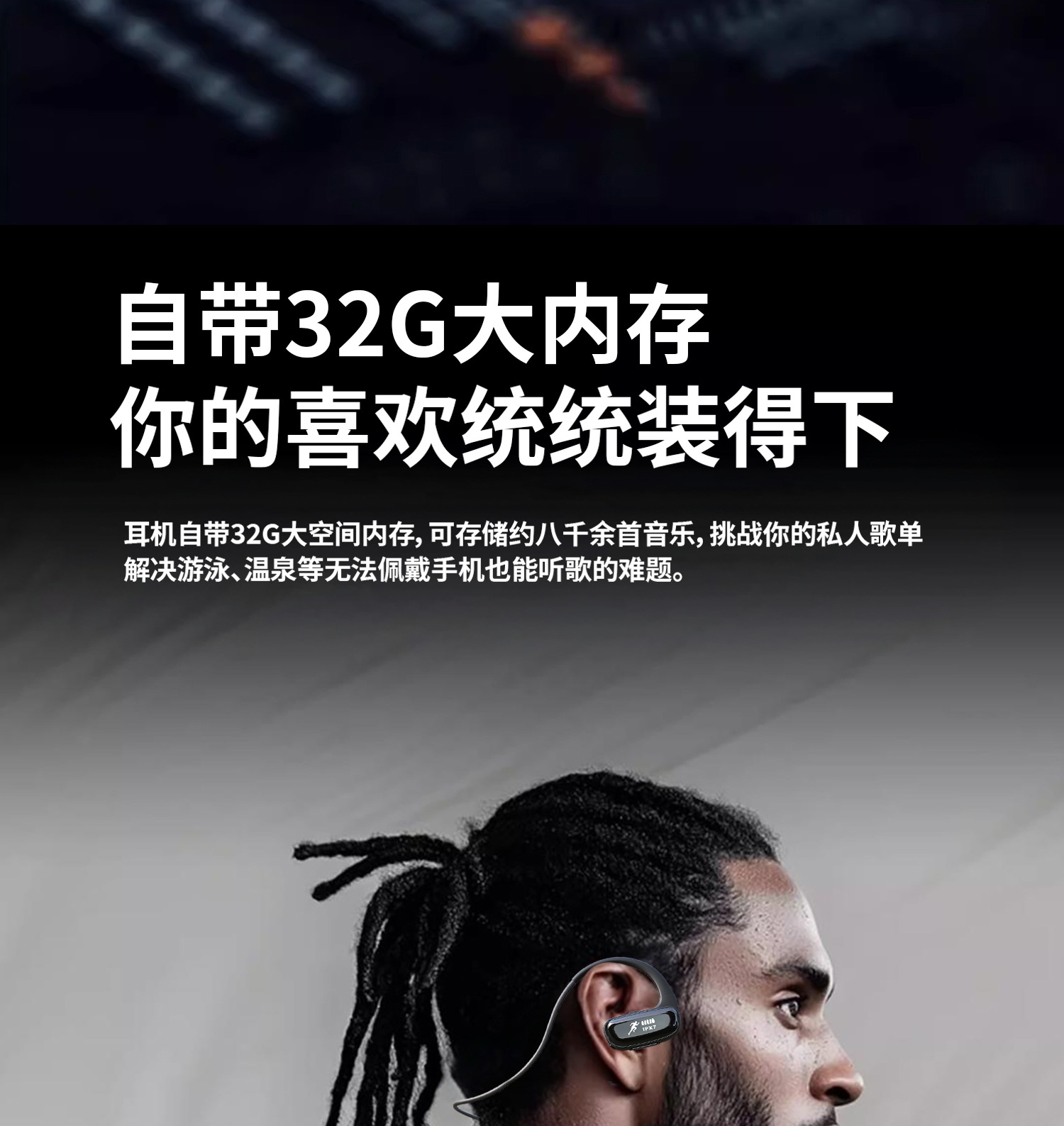 새로운 인 이어 무선 스포츠 블루투스 헤드셋 귀 32G 메모리 방수 실행 특수 내구성