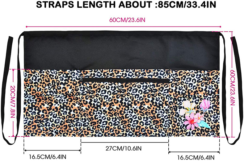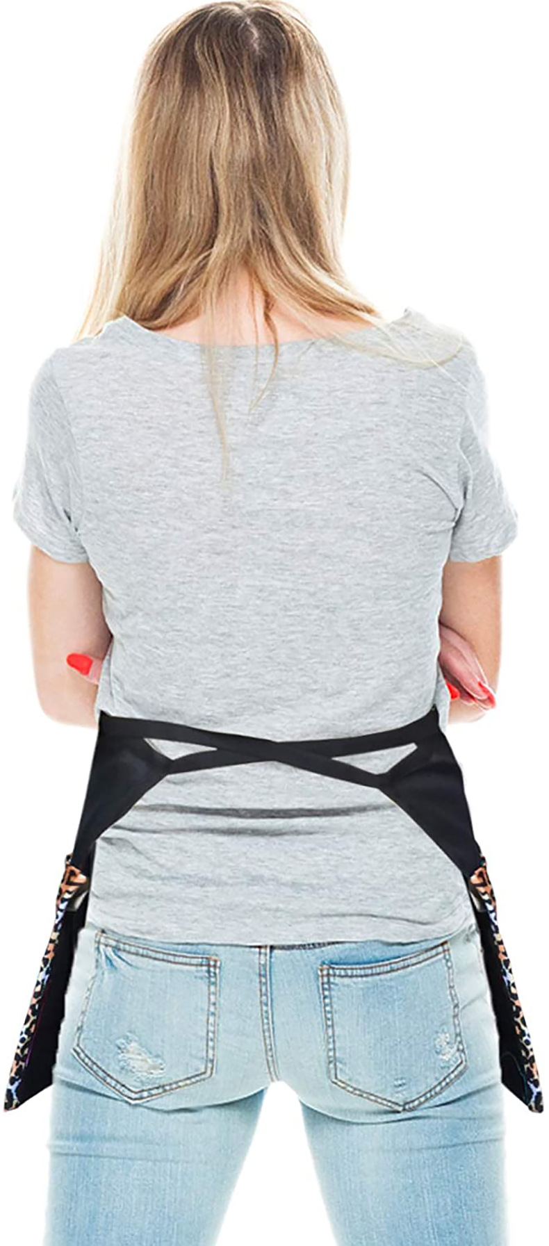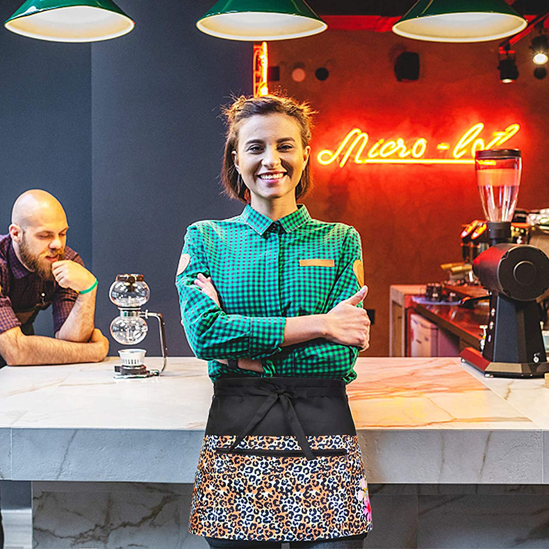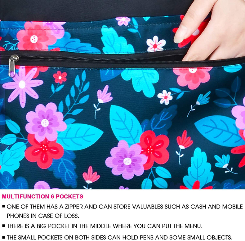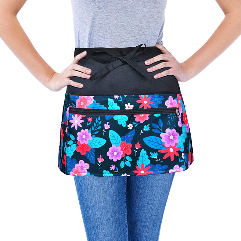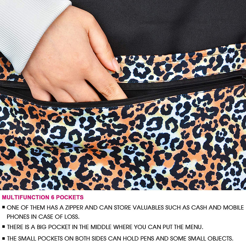 폴리에스터 하프 스커트 레오파드 무늬 꽃 짧은 반 앞치마 지퍼 바 커피 숍 작업 앞치마 도매