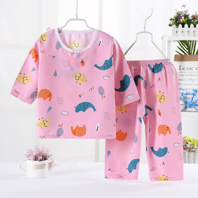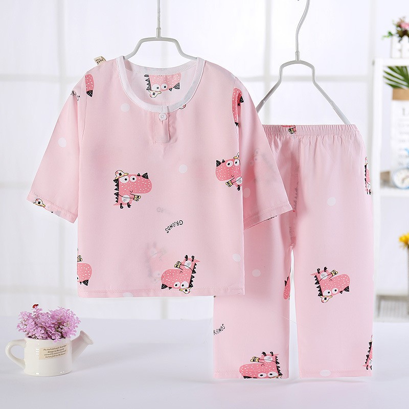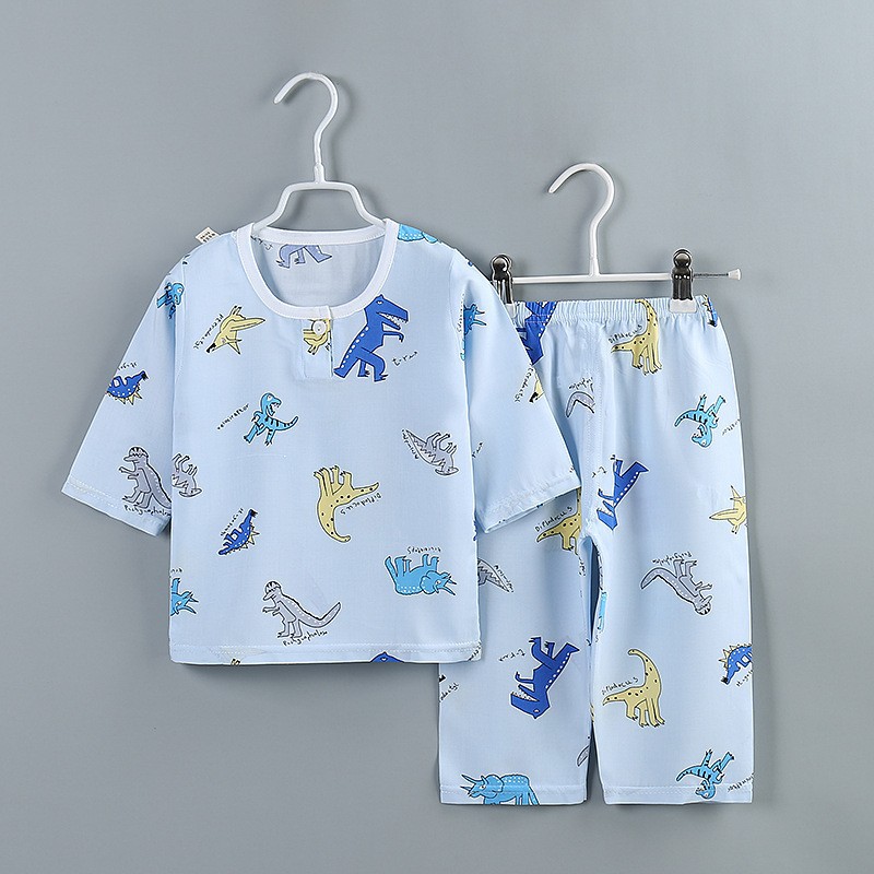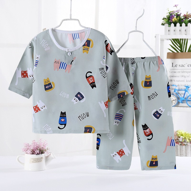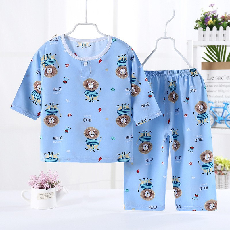 어린이 잠옷 도매 여름 얇은 면 실크 세트 에어컨 의류 소년과 소녀 7 점 소매 홈 의류 머리에 대 한 어린이 의류스토어 가기