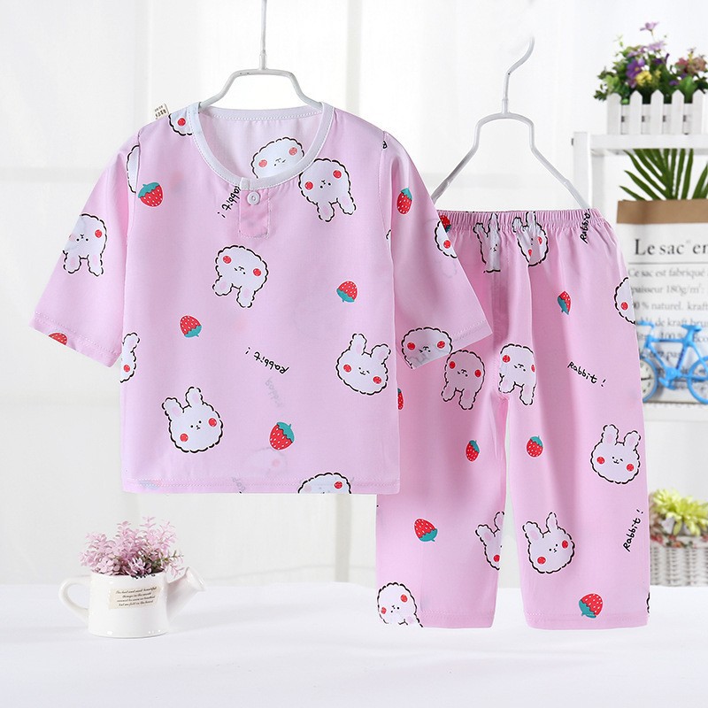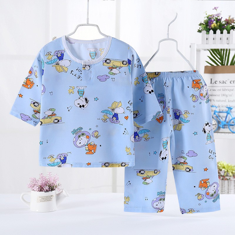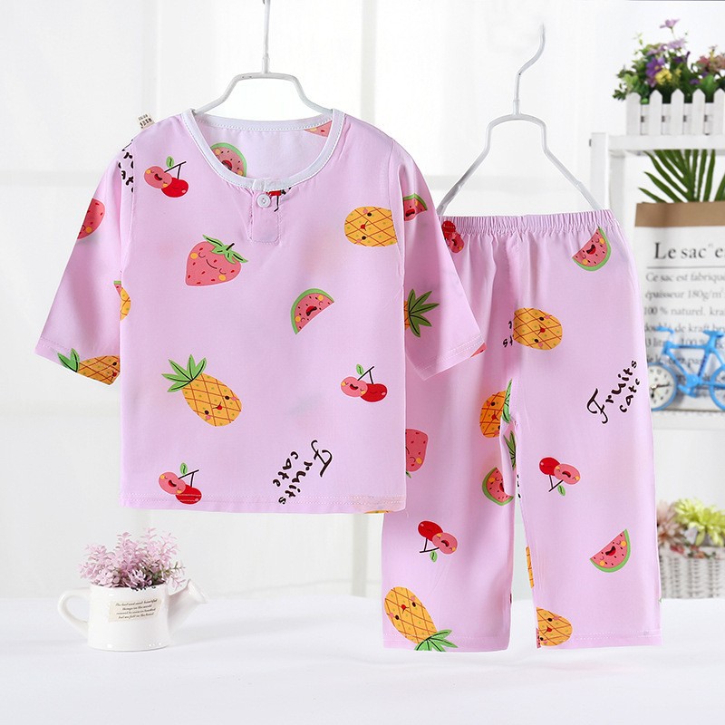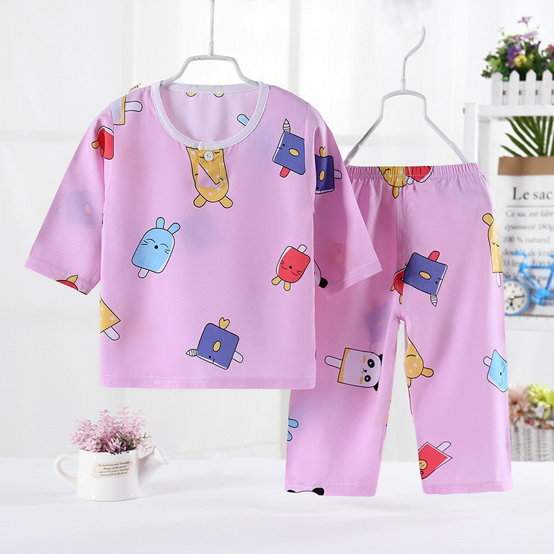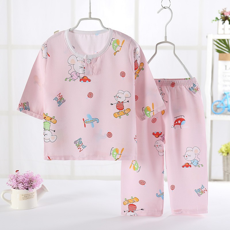 어린이 잠옷 도매 여름 얇은 면 실크 세트 에어컨 의류 소년과 소녀 7 점 소매 홈 의류 머리에 대 한 어린이 의류스토어 가기