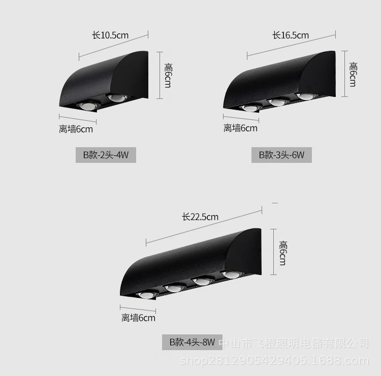 • 유형 C-소형 조광 가능 벽 램프-6W-검정색 따뜻한 조명