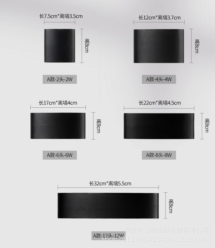 • 유형 C-소형 디밍 벽 램프-12W 검정색 따뜻한 조명