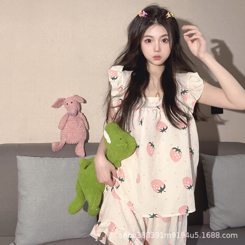 2023 일본 스타일 새로운 여름 잠옷 여성 슬링 소녀 학생 신선한 공주 스타일 여름 홈 세트