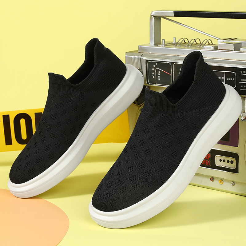 재고 공급 크로스 보더 플러스 사이즈 보드 신발 남성용 및 여성용 플라이 짠 통기성 캐주얼 운동화 슬립온 로퍼