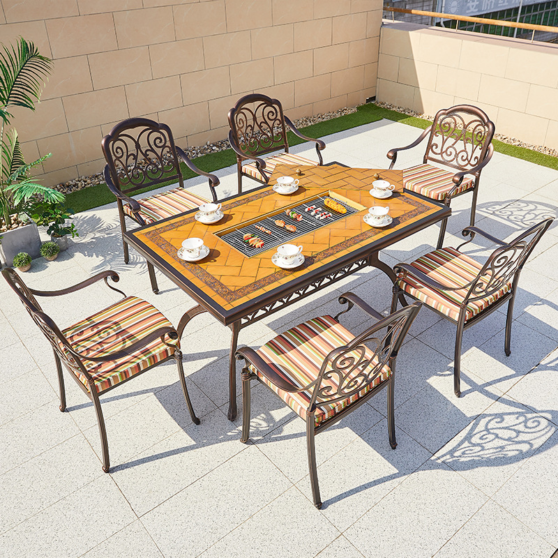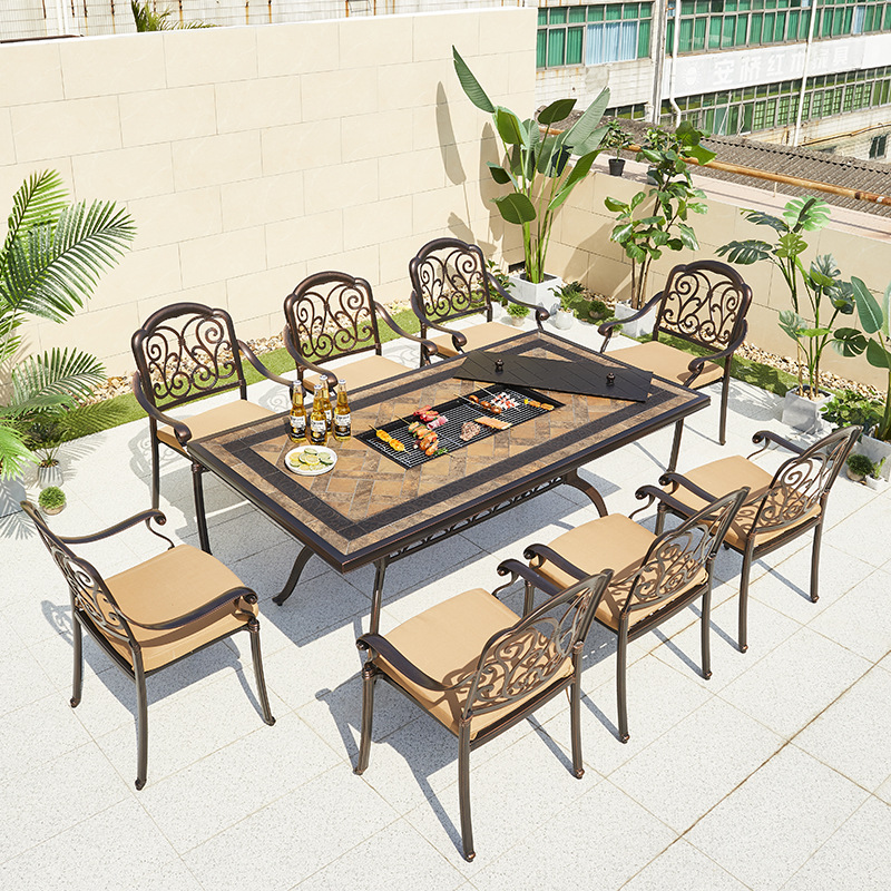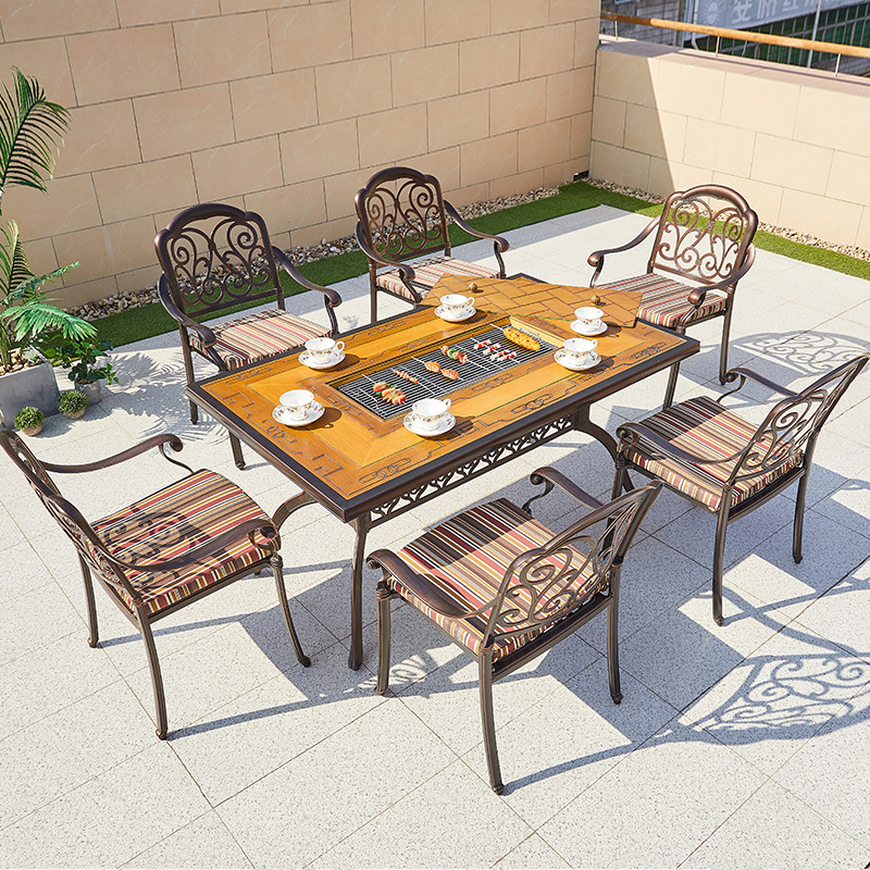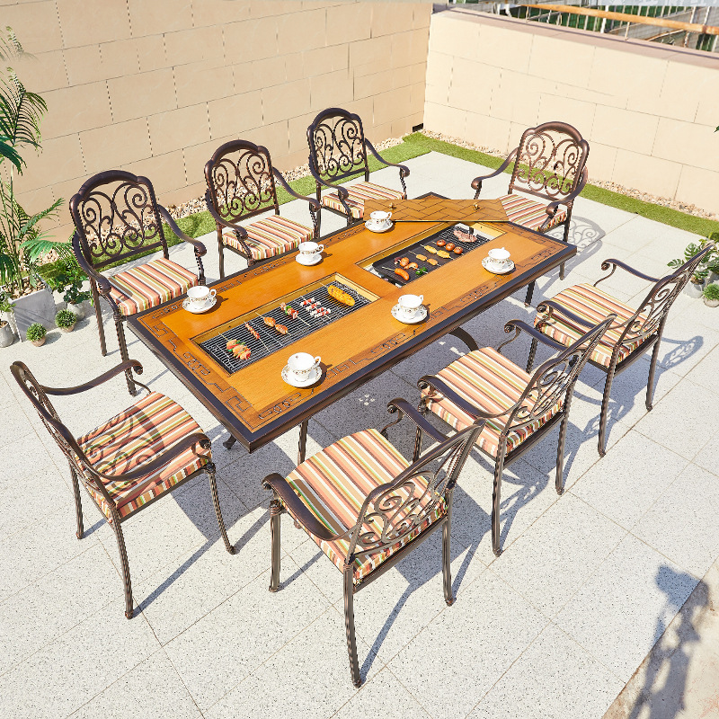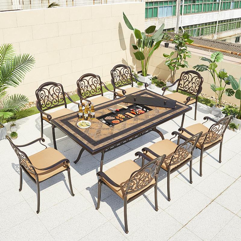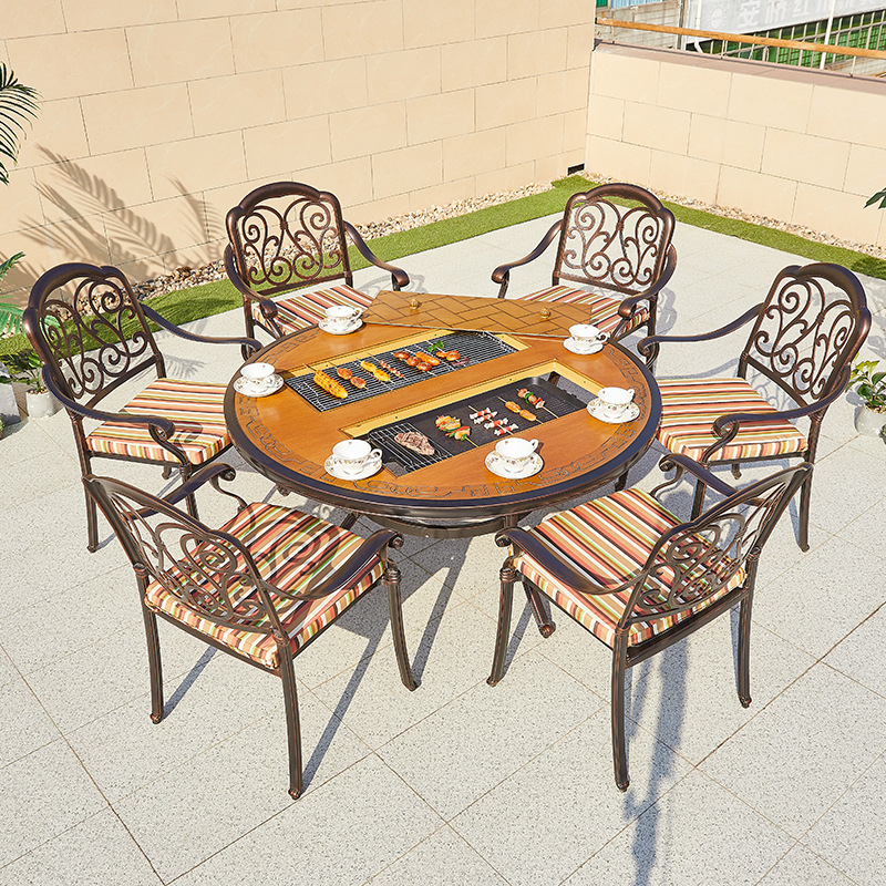 야외 바베큐 테이블 정원 안뜰 바베큐 테이블 야외 레저 야외 캐스트 알루미늄 전기 베이킹 탄소 베이킹 테이블과 의자 조합