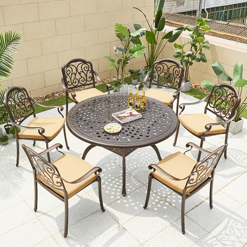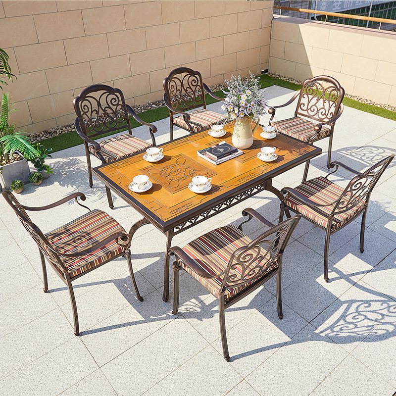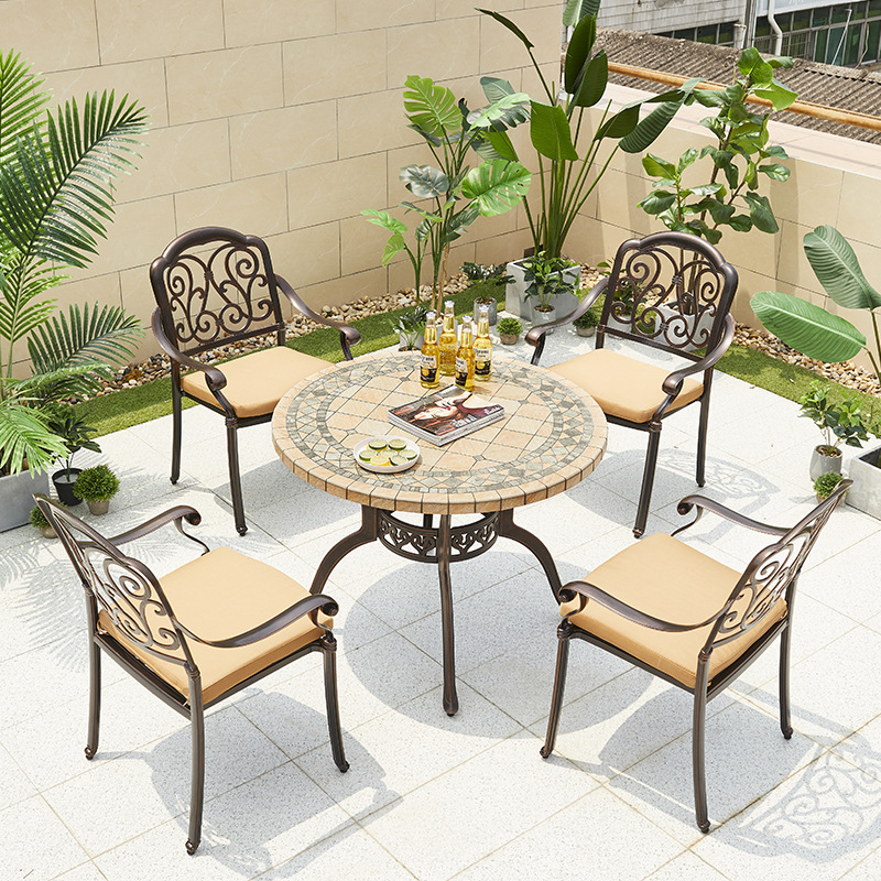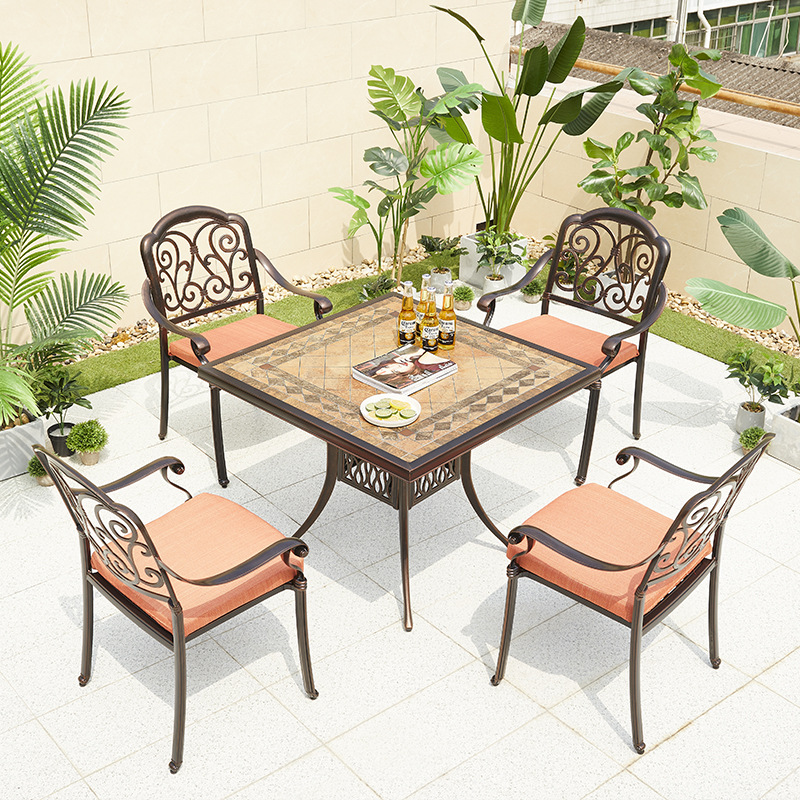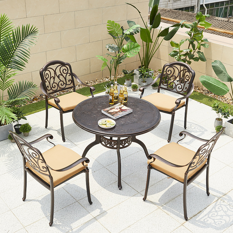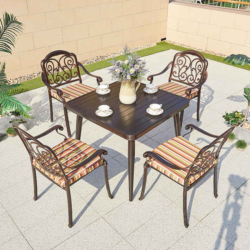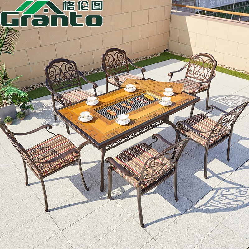 야외 바베큐 테이블 정원 안뜰 바베큐 테이블 야외 레저 야외 캐스트 알루미늄 전기 베이킹 탄소 베이킹 테이블과 의자 조합