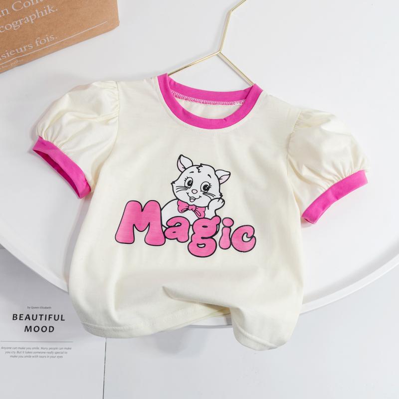 여아 2023 여름 의류 새로운 아동복 아동 반팔 티셔츠 아동 웨스턴 스타일 탑 베이비 올 매치 베이스 셔츠스토어 가기