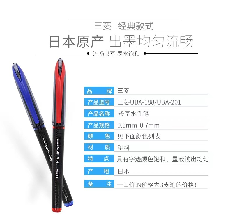 일본 미쓰비시 UBA-188AIR 블랙 기술 시그니처 워터 펜 0.5mm 드로잉 펜 젤 펜 만화 펜스토어 가기