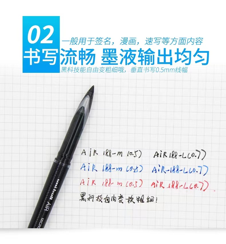 일본 미쓰비시 UBA-188AIR 블랙 기술 시그니처 워터 펜 0.5mm 드로잉 펜 젤 펜 만화 펜