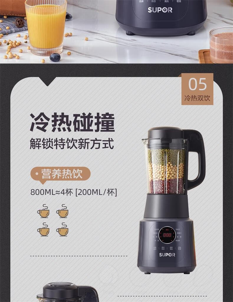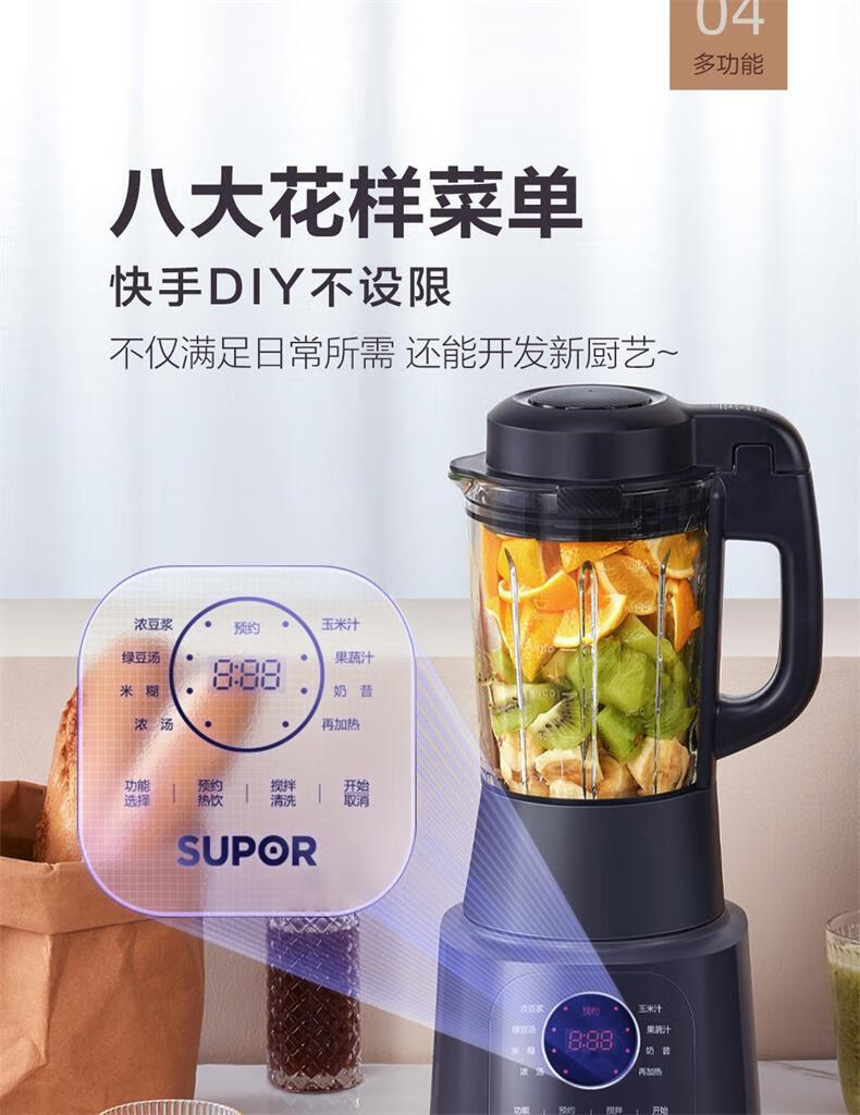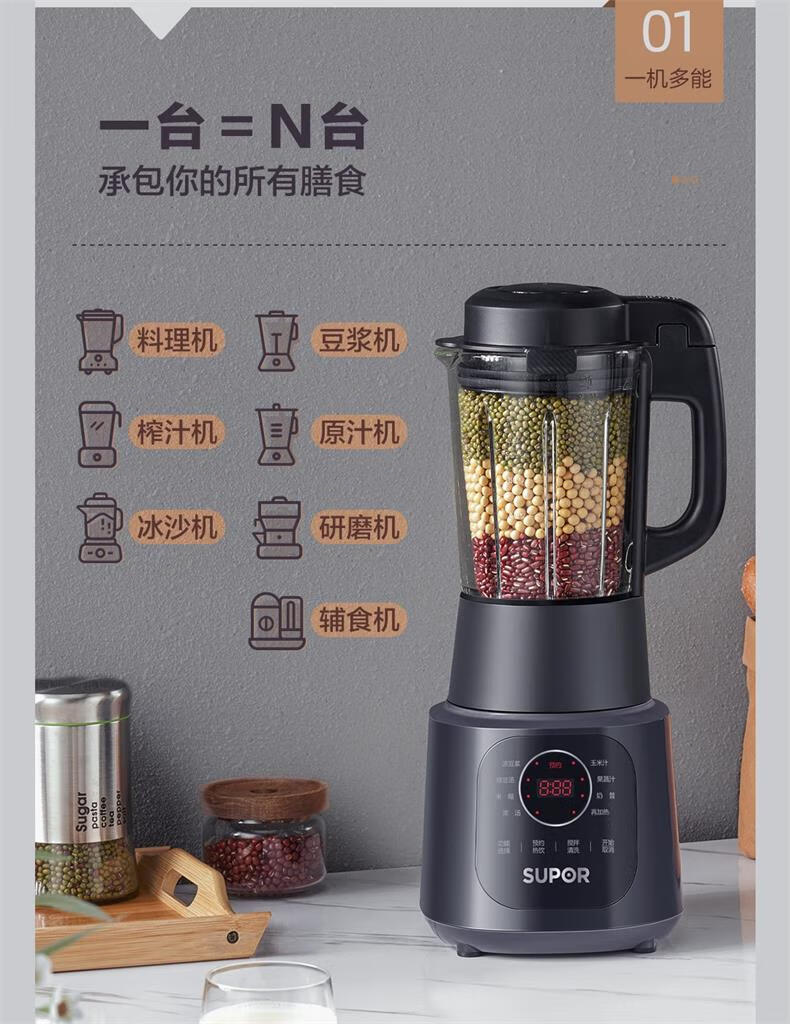 Supor 벽부수기 가정용 다기능 두유 기계 지능형 예약 난방 조리 주스 믹서 SP529