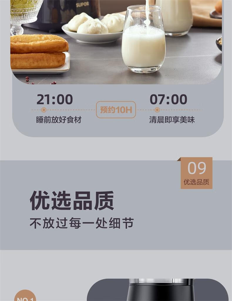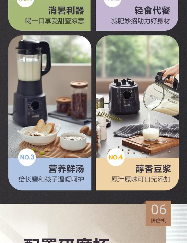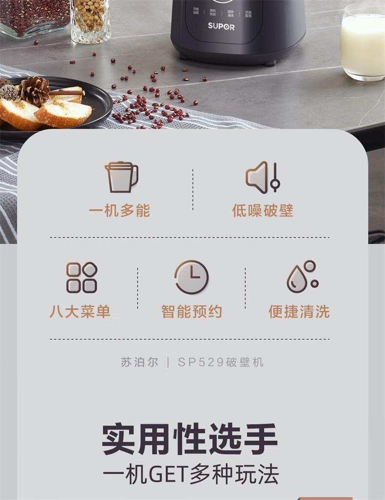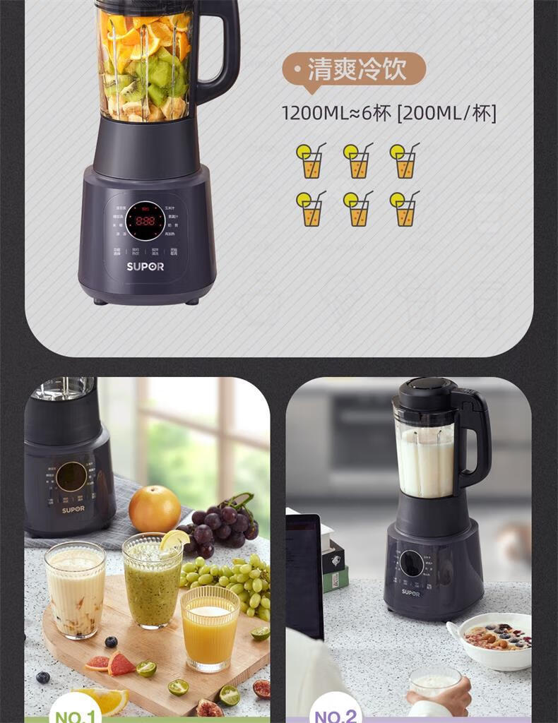 Supor 벽부수기 가정용 다기능 두유 기계 지능형 예약 난방 조리 주스 믹서 SP529스토어 가기