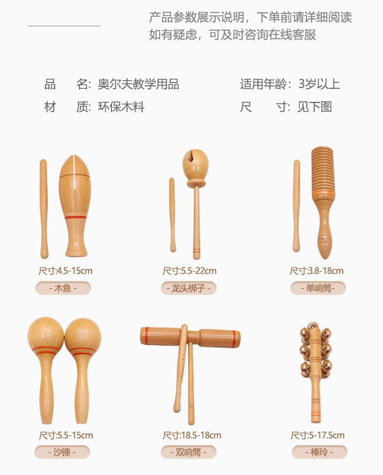 오르프 타악기 너도밤 나무 벨 드럼 드럼 사운드 보드 나무 물고기 큰 모래 망치 벨 드럼 더블 벨 튜브 교육 보조 전체 세트스토어 가기