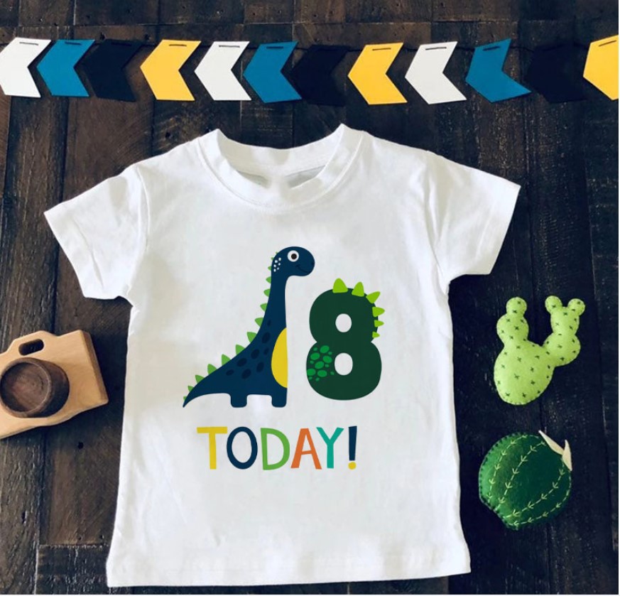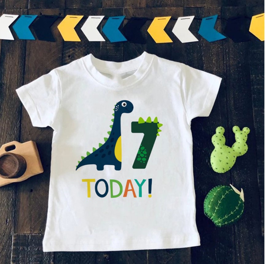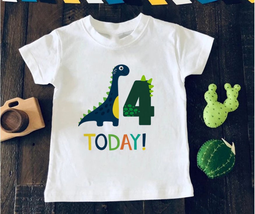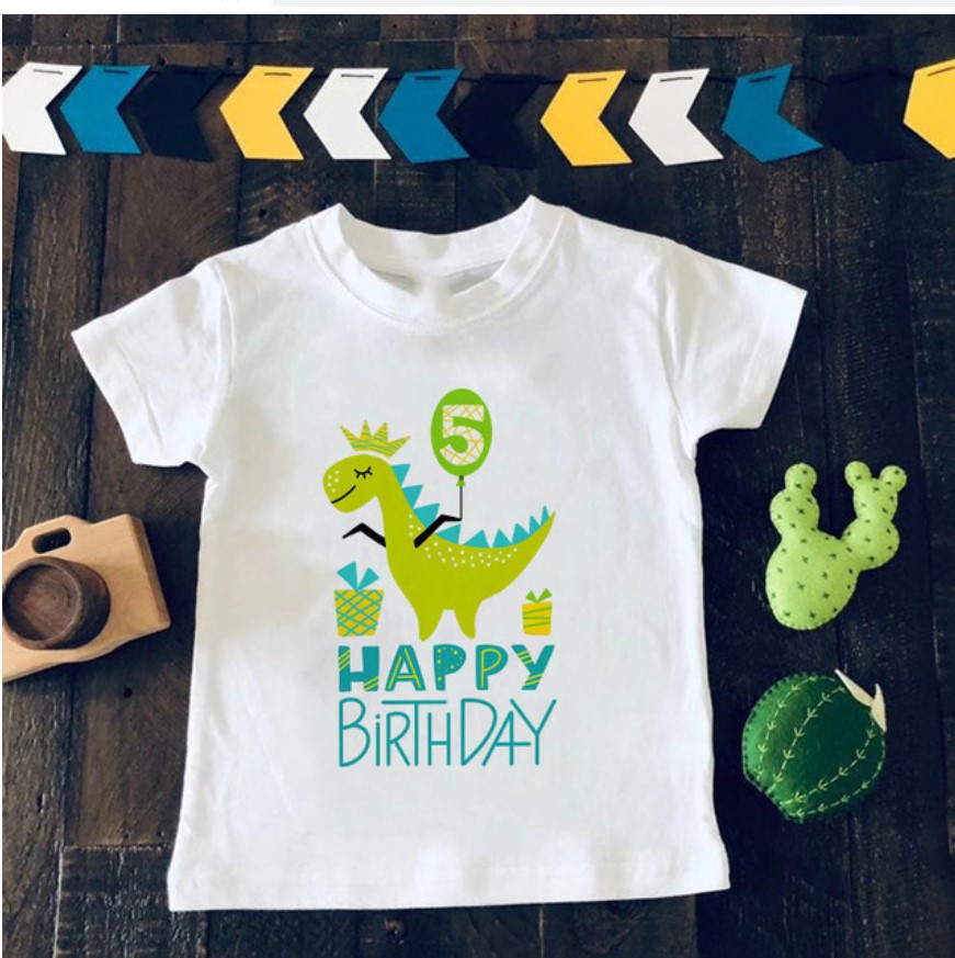 만화 소년 공룡 생일 셔츠 어린이 공룡 프린트 어린이 생일 축하 공룡 티셔츠 No.1 -6