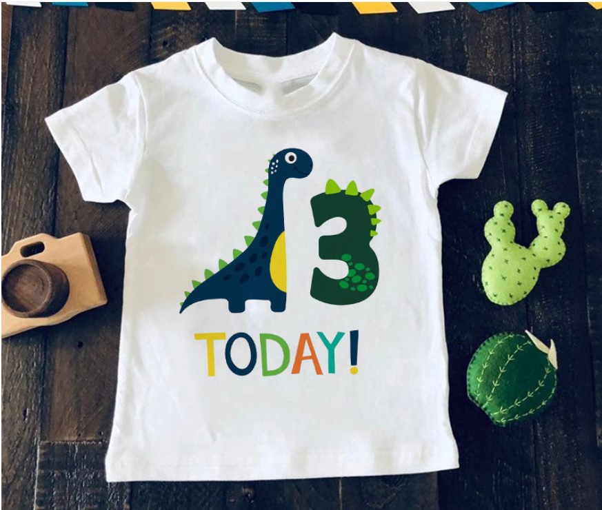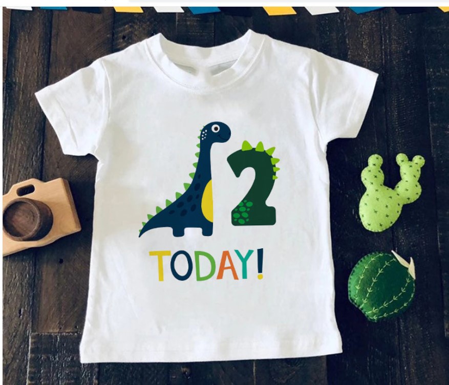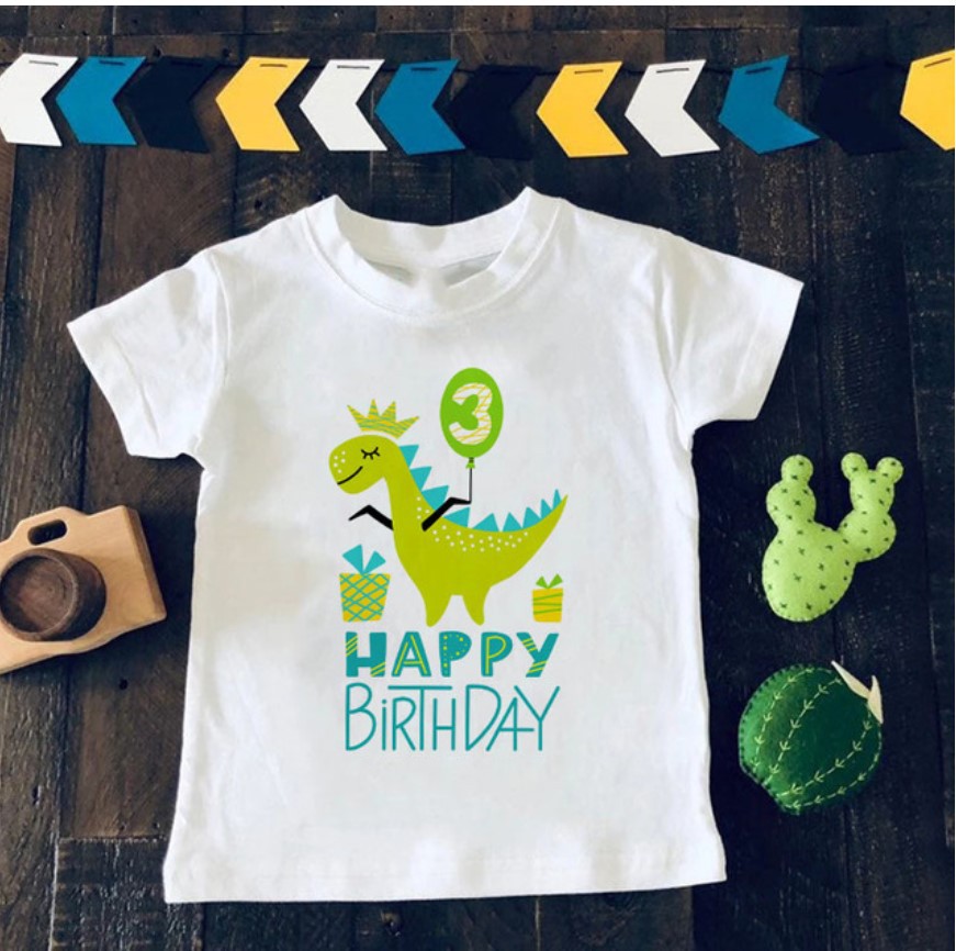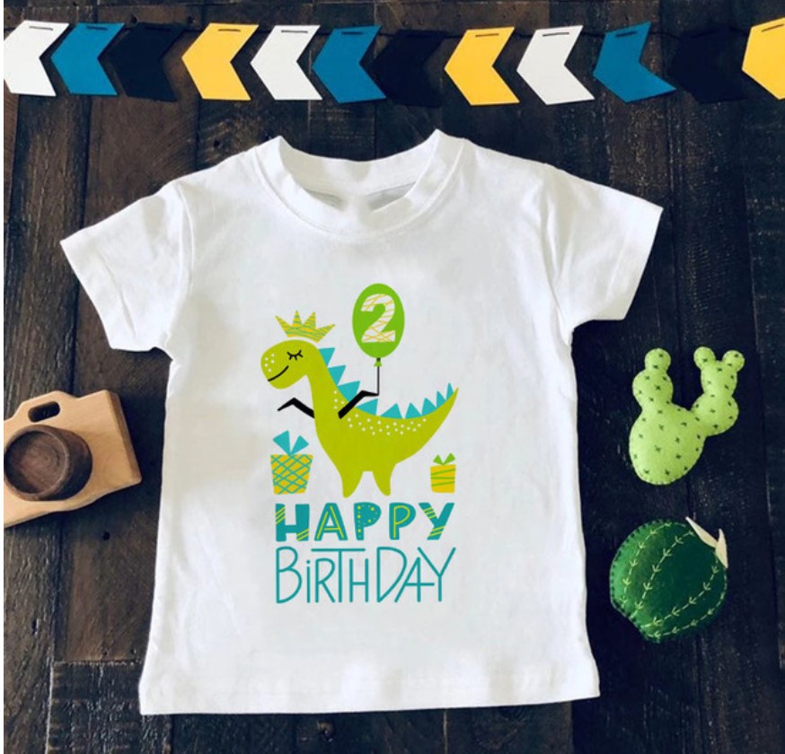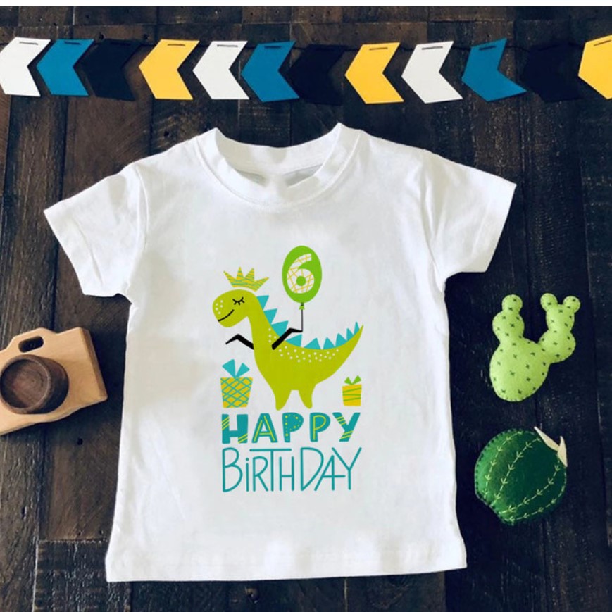 만화 소년 공룡 생일 셔츠 어린이 공룡 프린트 어린이 생일 축하 공룡 티셔츠 No.1 -6