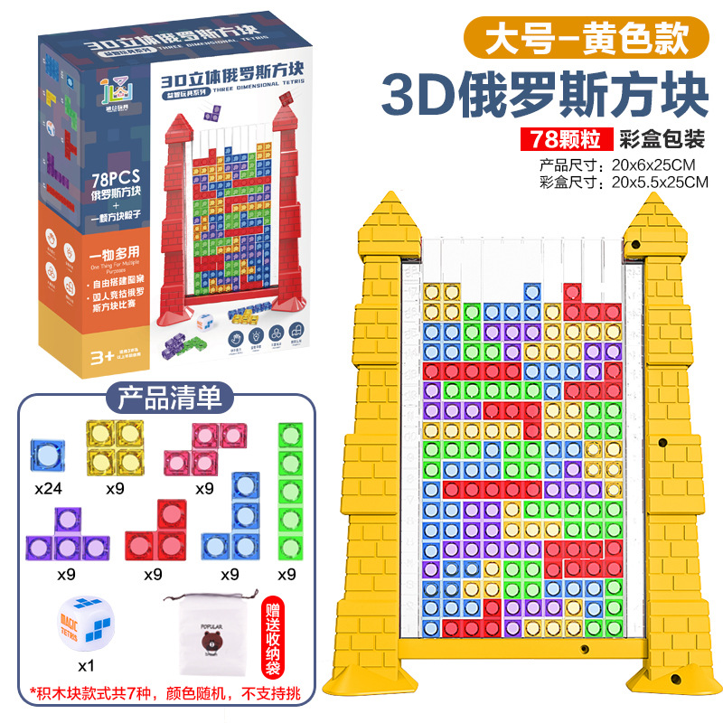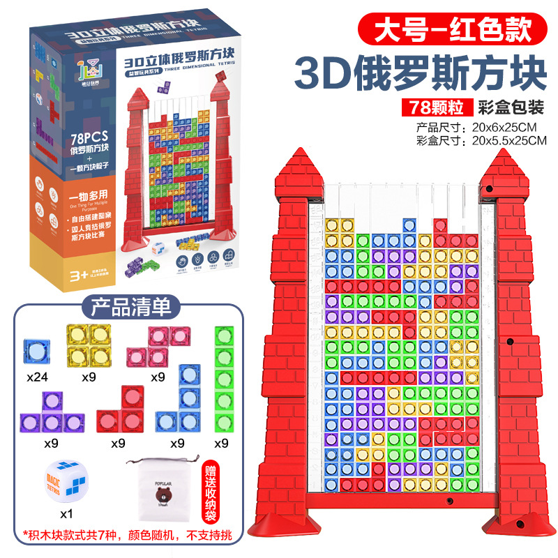 【大号款】立体俄罗斯方块 中文彩盒 78粒配件,骰子x1,收纳袋x1 20x6x25cm 20x5.5x25cm 72 83*36*77CM