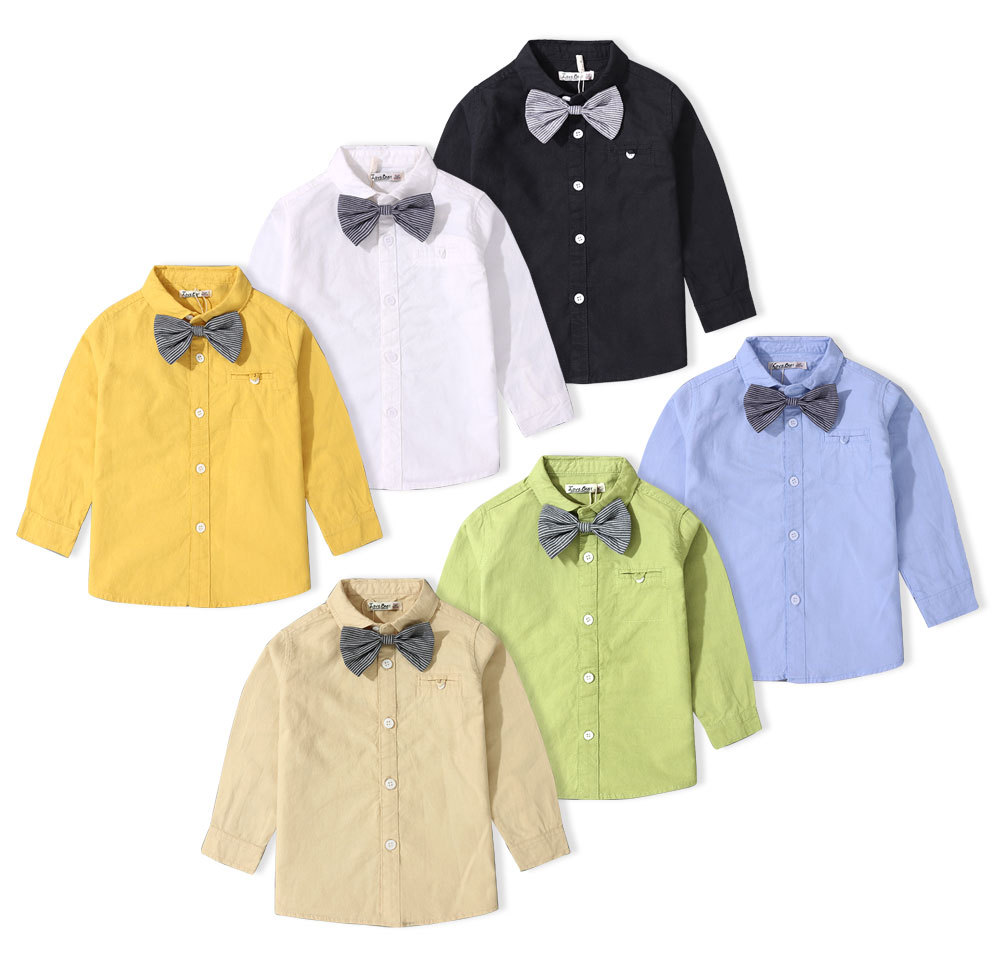 부티크 셔츠 공장 다이렉트 2022 가을 뉴 브리티시 스트레치 면과 린넨 셔츠 어린이 나비 넥타이 코튼 셔츠스토어 가기