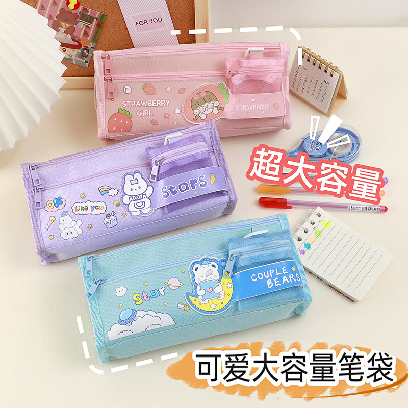 大容量卡通笔袋女孩ins高颜值小学生铅笔盒多功能男孩文具袋批发