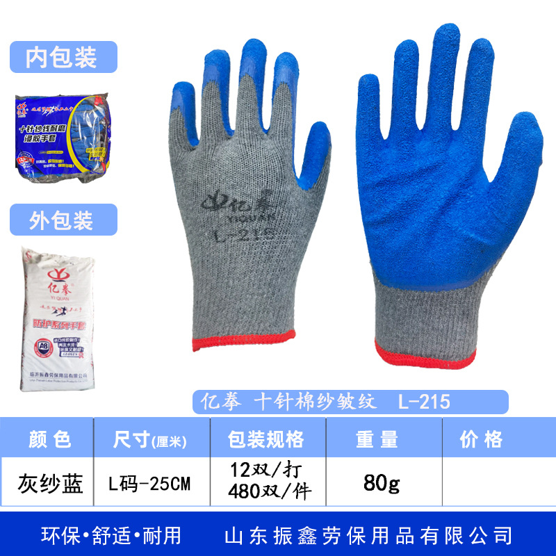 회색 거즈 블루 코팅 작업용 장갑 내마모성 미끄럼 방지 면사 주름 장갑 두꺼운 실사 고무 코팅 장갑스토어 가기