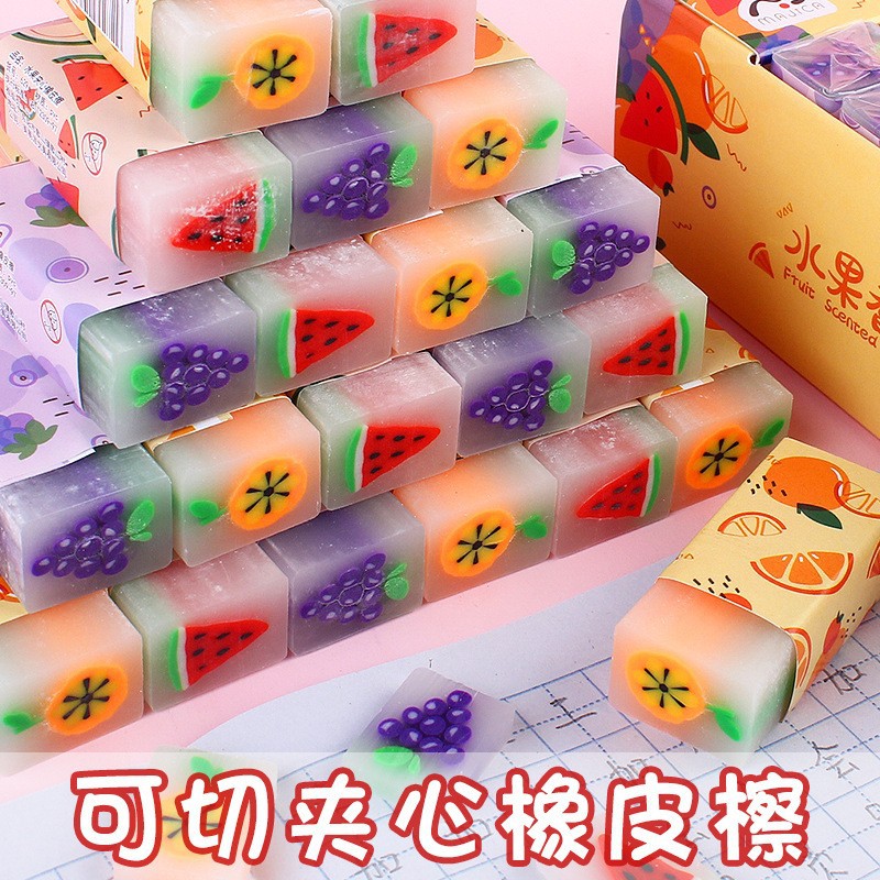 과일 슬라이스 지우개 창조적 인 만화 초등학교 지우개 덜 스크랩 귀여운 향기로운 샌드위치 지우개 공장 콘센트스토어 가기