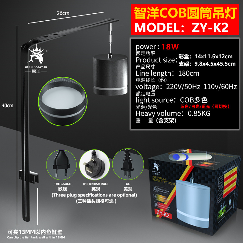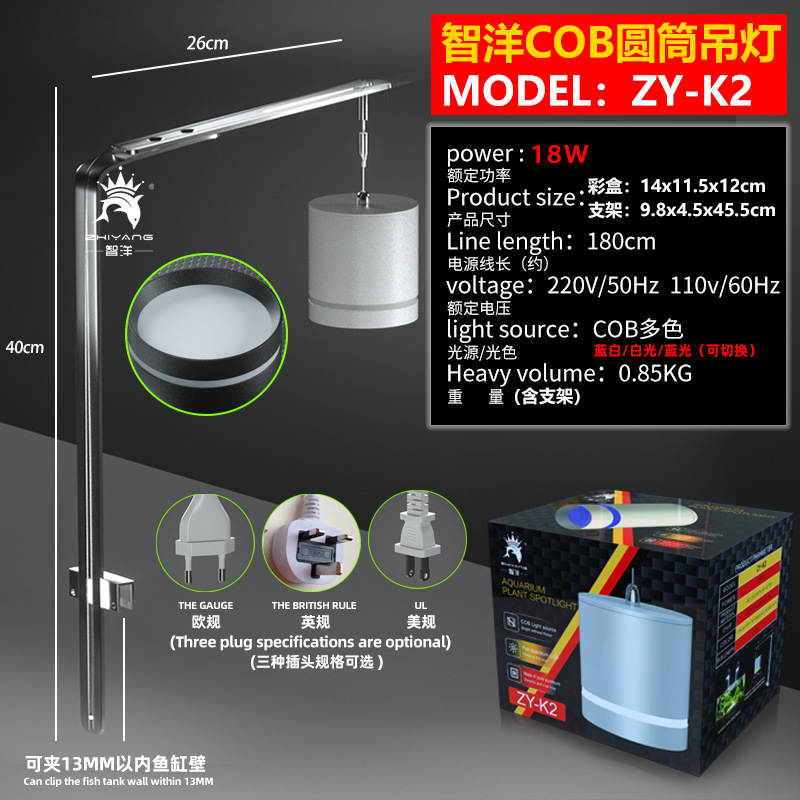 어항 샹들리에 물 잔디 슈퍼 화이트 해수 조명 실린더 COB 알루미늄 합금 전체 스펙트럼 샹들리에