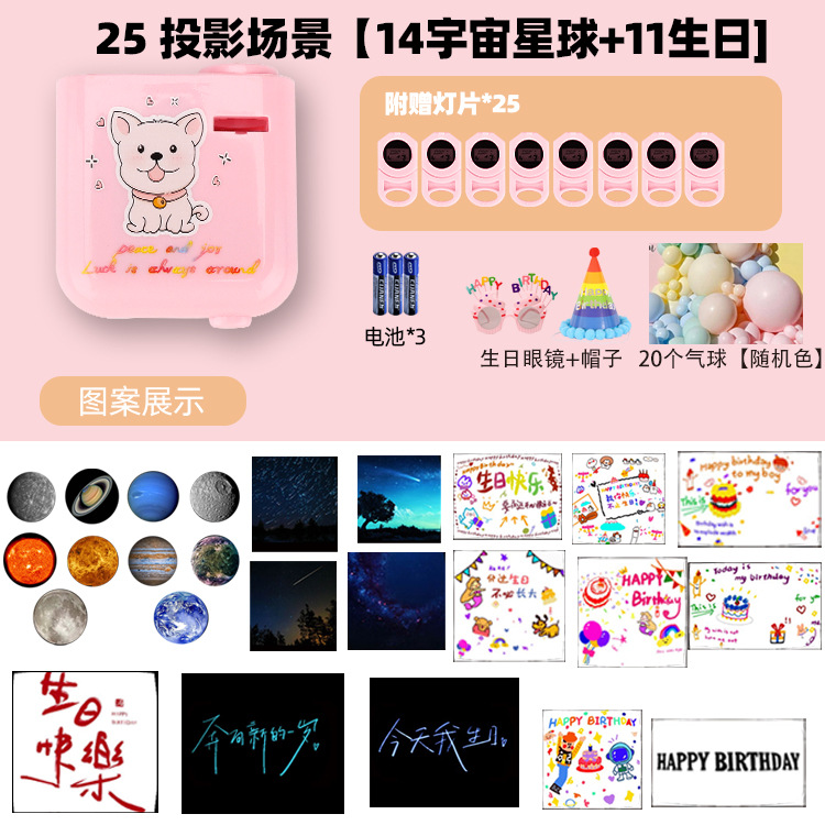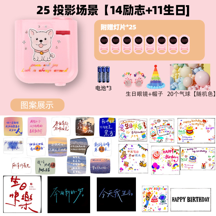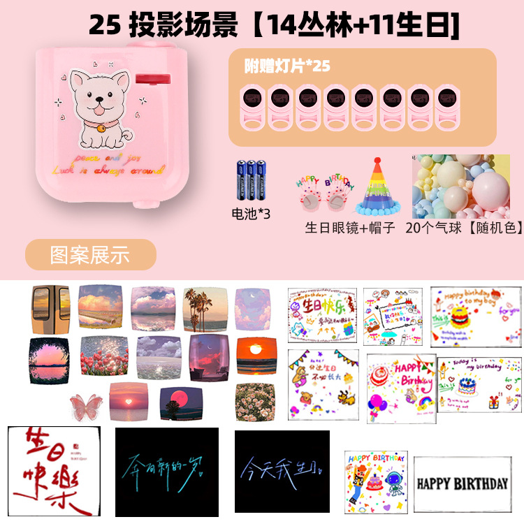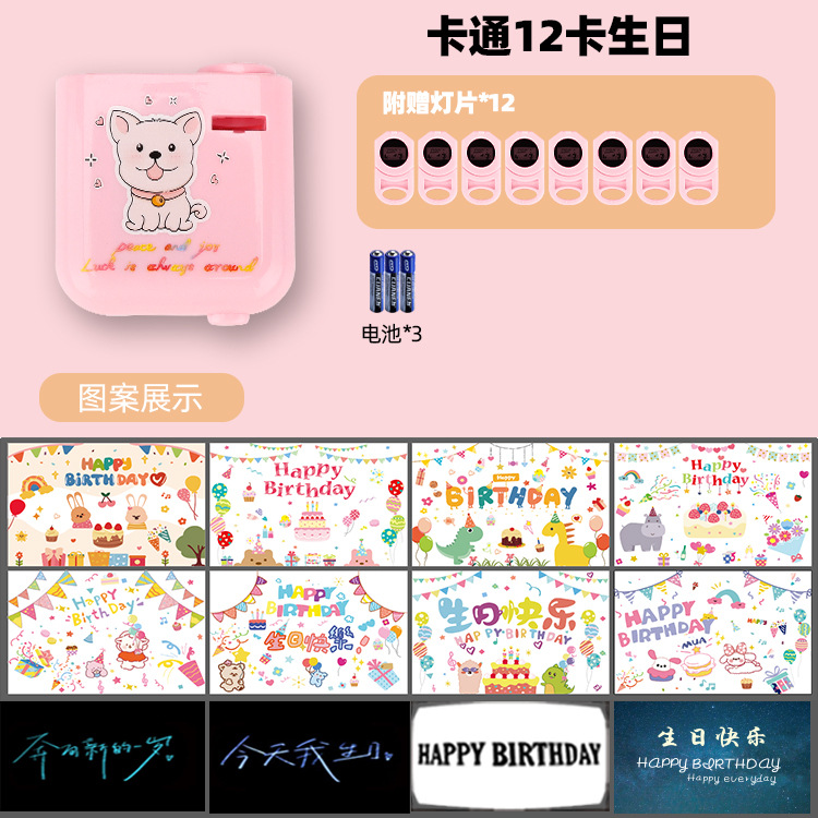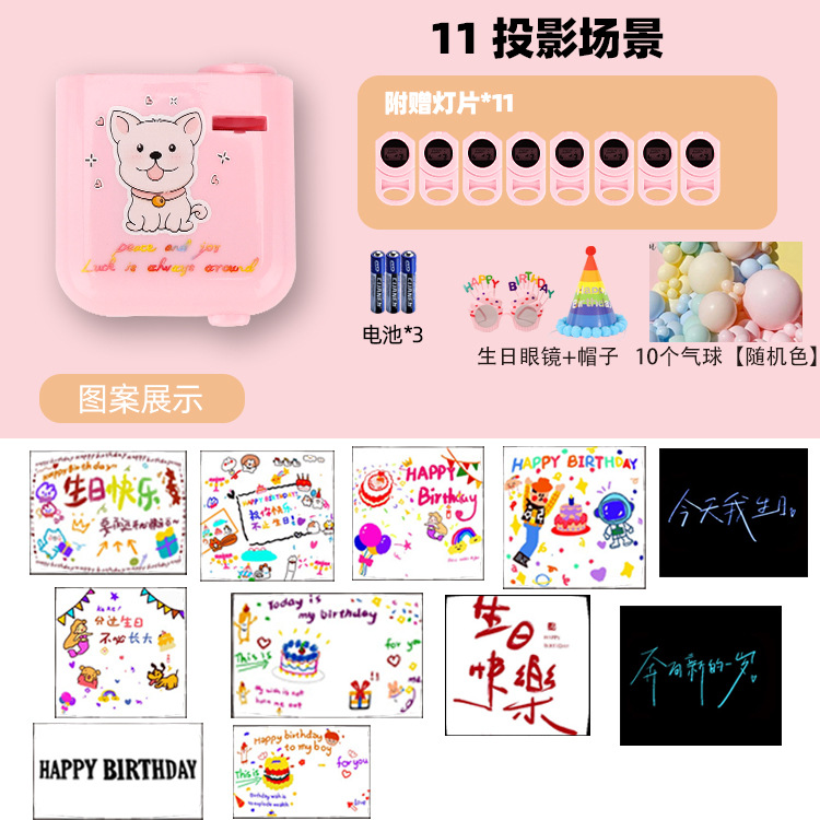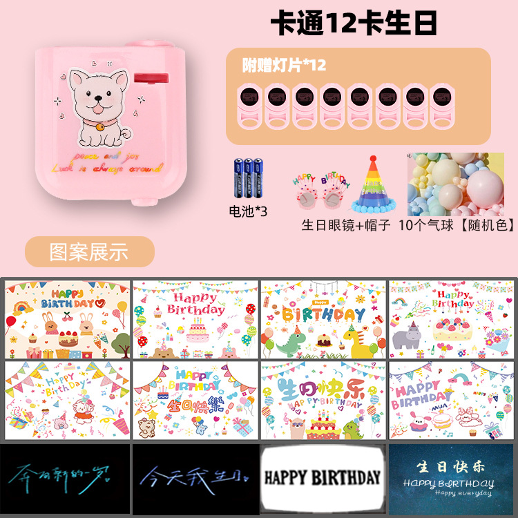 • 핑크 프로젝터 + 12 만화 생일 카드 + 모자 안경 풍선