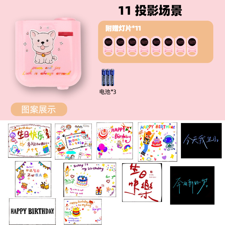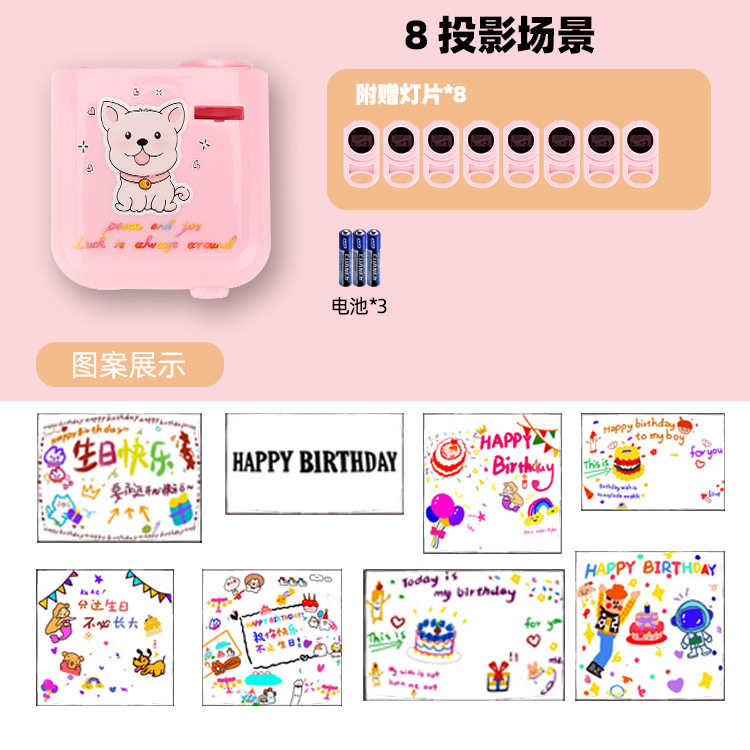 • 핑크 프로젝터 + 8 만화 생일 카드