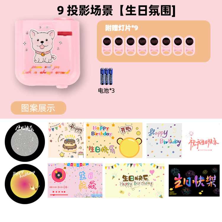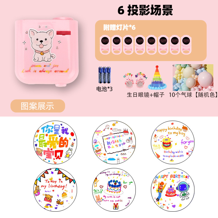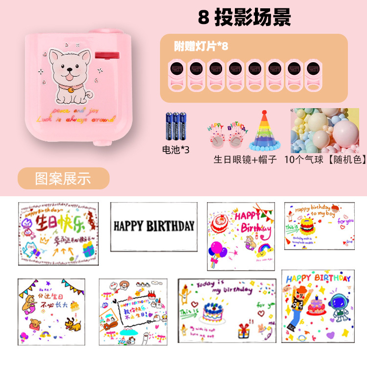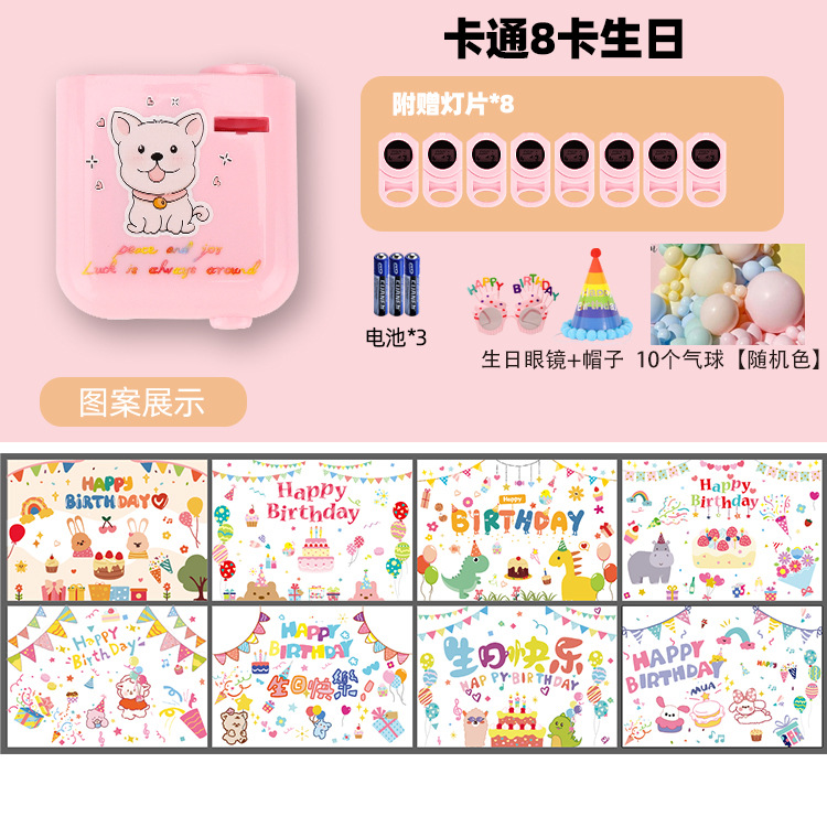 • 핑크 프로젝터 + 8 만화 생일 카드 + 모자 안경 풍선