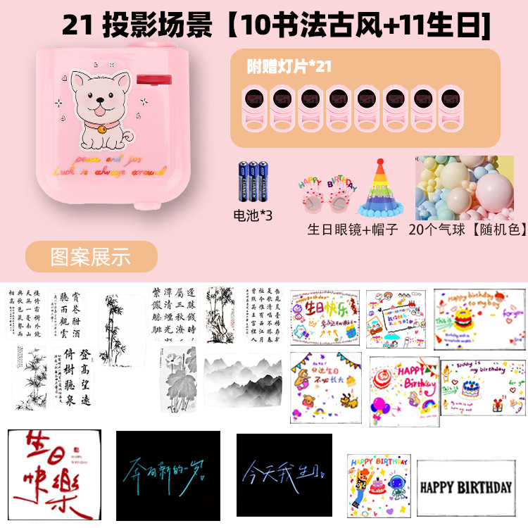 • 핑크 프로젝터 + 10 서예 골동품 + 풍선